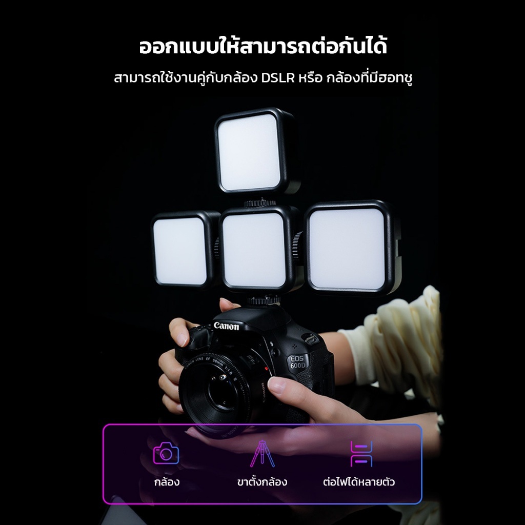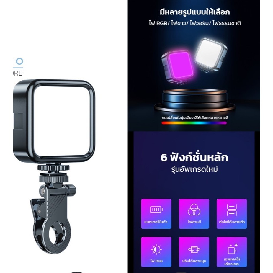 ไฟสตูดิโอ สำหรับพกพา Phone Camera Fill Lamp รุ่นชาร์จแบต สว่าง ขนาดเล็ก น้ำหนักเบา มีตัวหนีบมือถือ