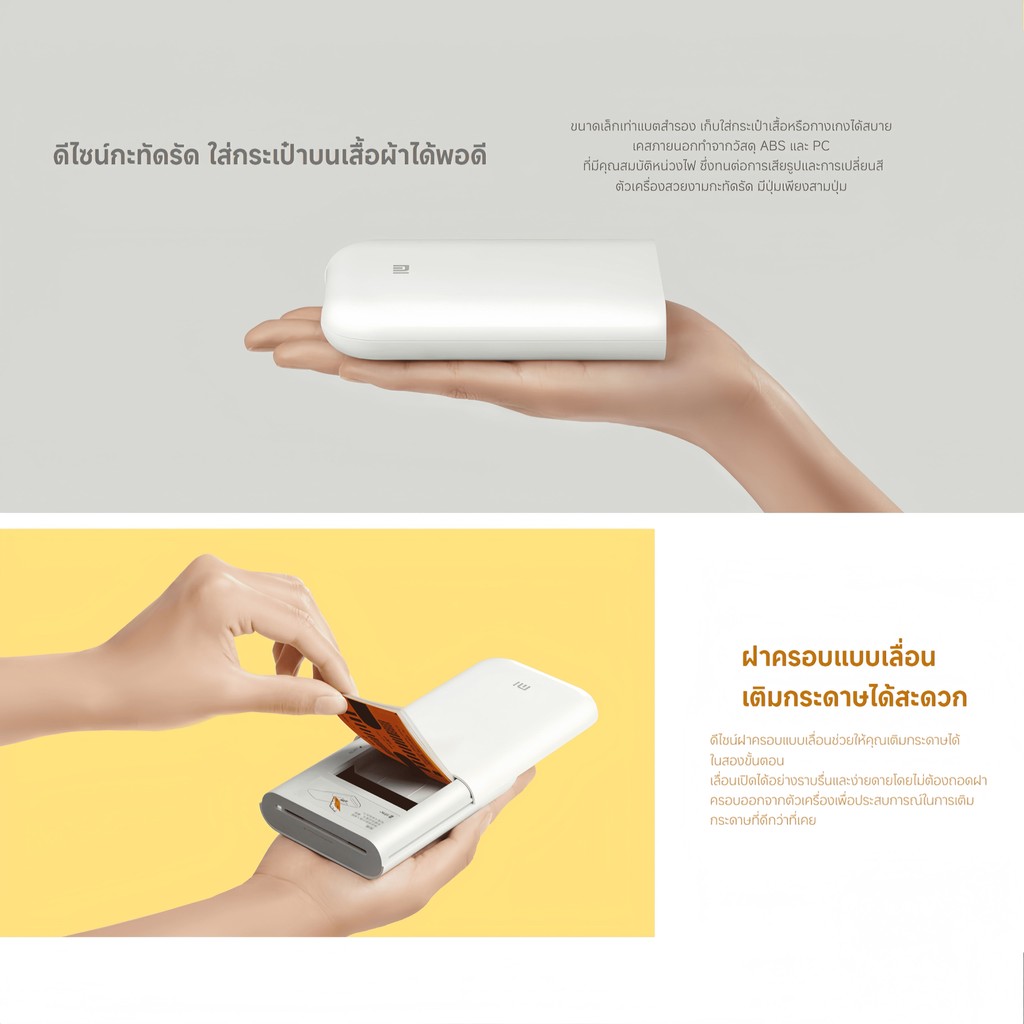 Xiaomi Portable Photo Printer พกพา ปริ้นเตอร์ I ใส่กระเป๋าได้ I ความละเอียด 313×400 dpi I การพิมพ์สติกเกอร์ภาพถ่าย
