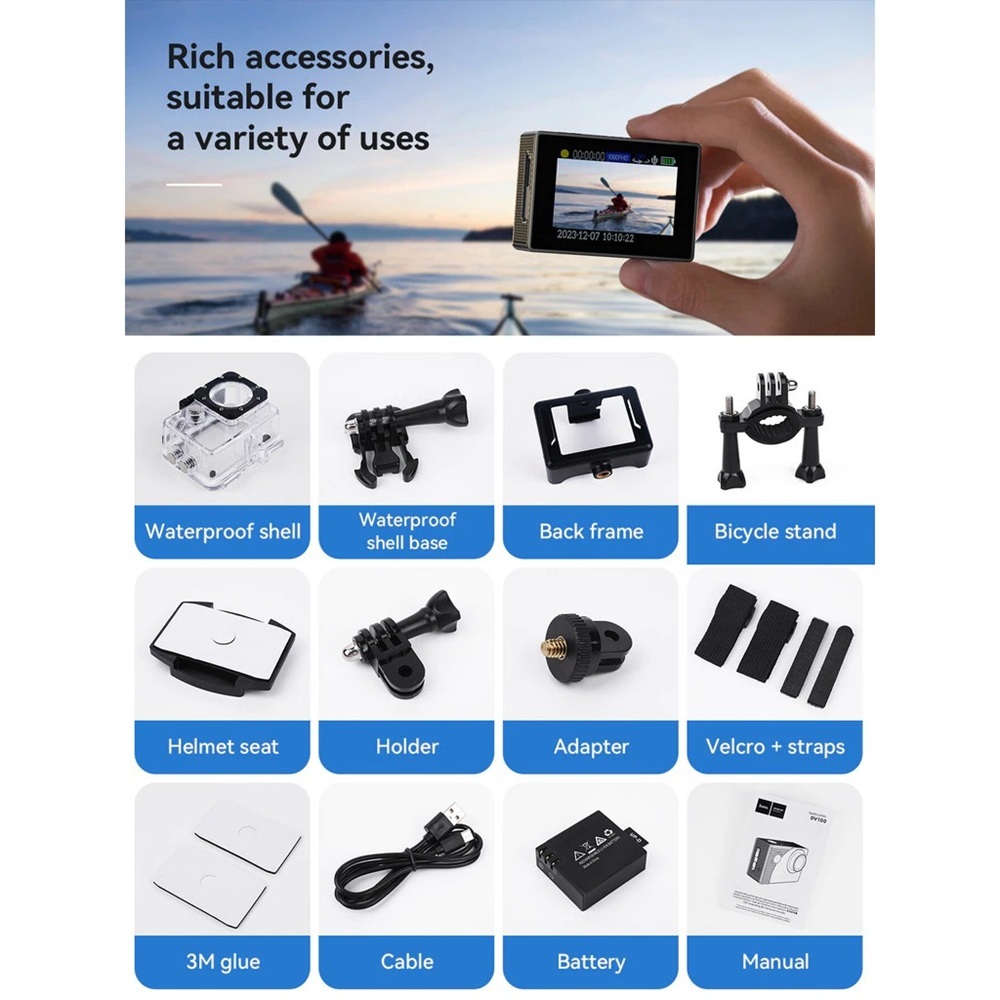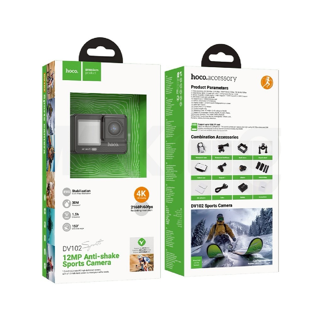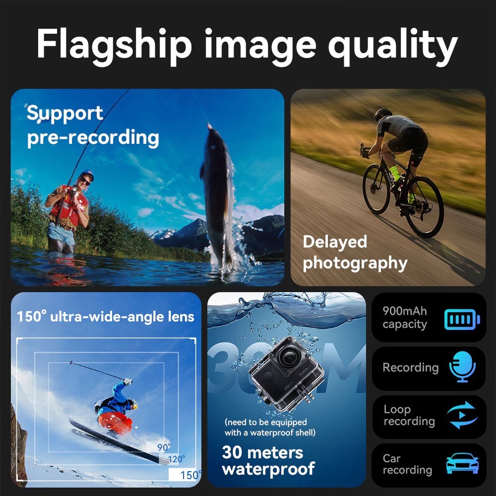 HOCO DV102 กล้องแอคชั่น Sports camera คุณภาพ 2160P/60fps กล้องกันน้ำลึก 30 เมตร เลนส์กว้าง 150 องศา