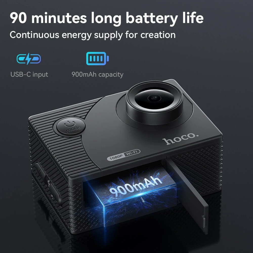 HOCO DV100 กล้องแอคชั่น กล้องกันน้ำ ลึก 30เมตร 1080P / 30fps หน้าจอ IPS 2 นิ้ว Action Camera