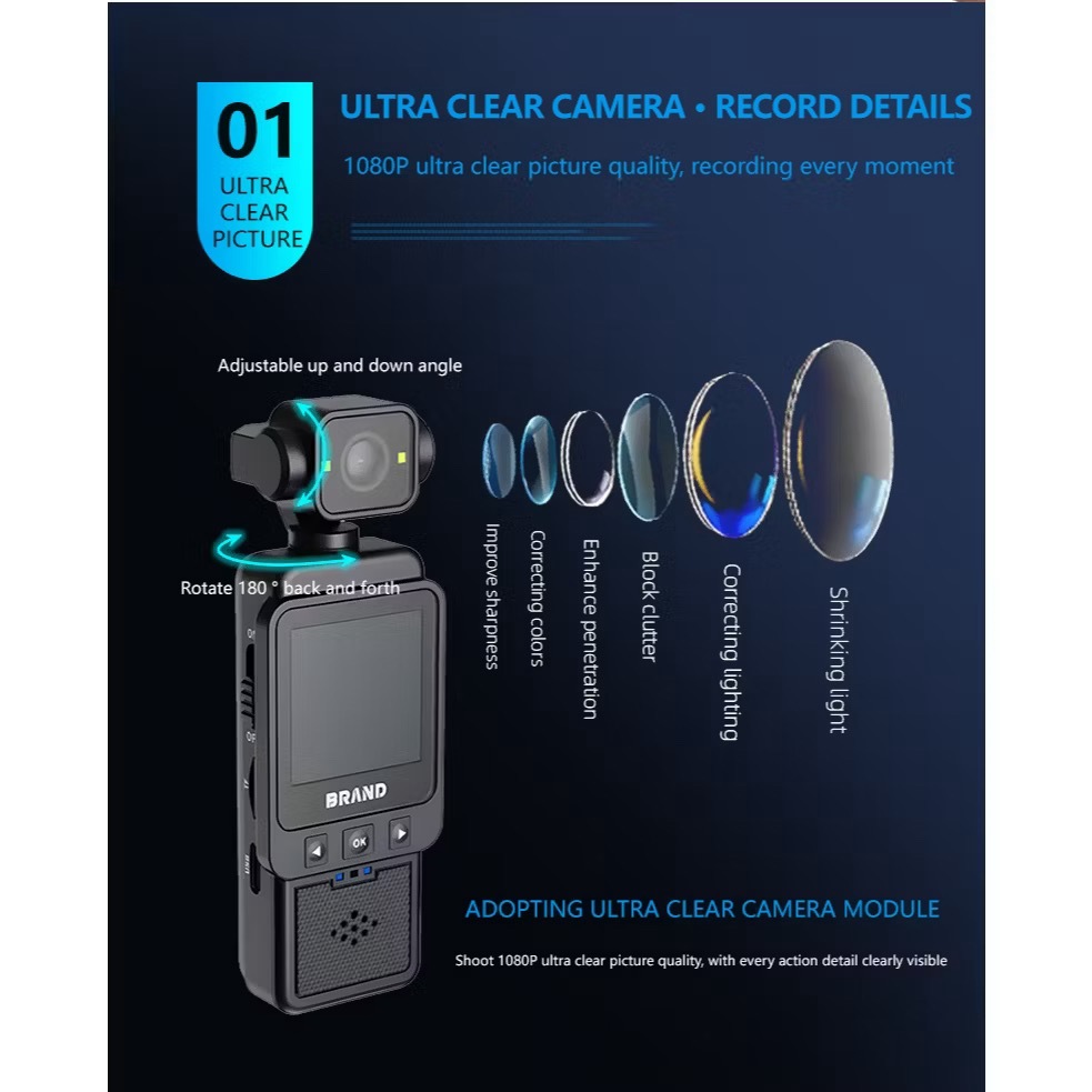 Pocket cam กล้องดิจิตอล 1.33 นิ้วหน้าจอ 270 องศาหมุน Wifi บันทึกการส่งข้อมูลแบบพกพา Sport Motion กล้อง 1080P