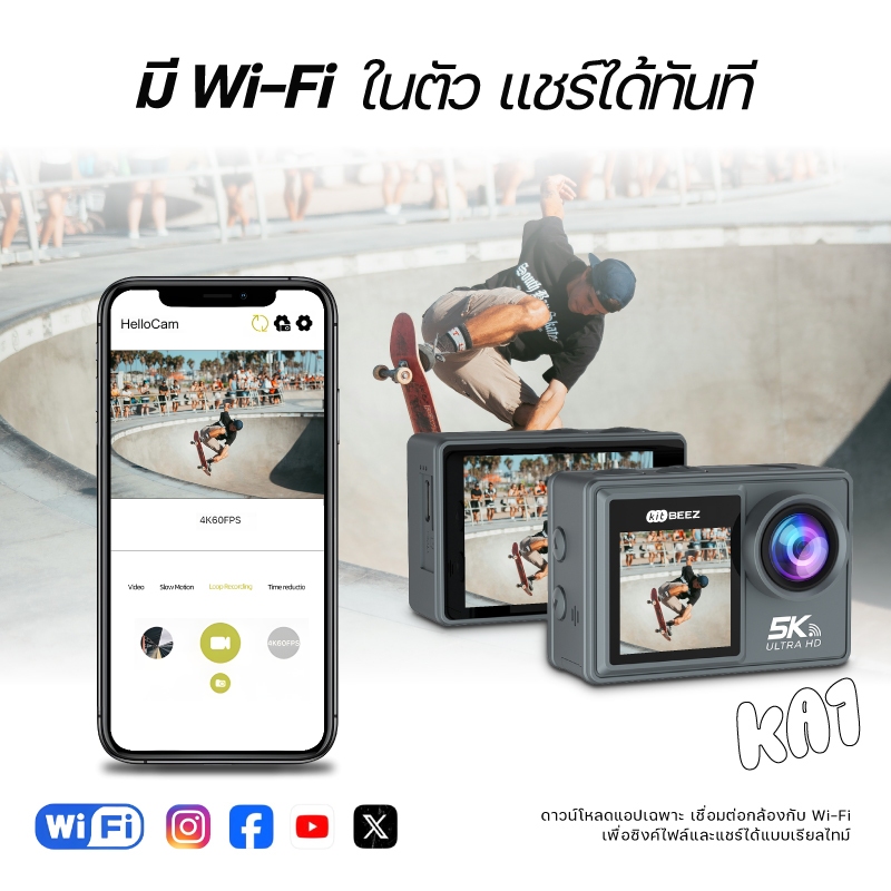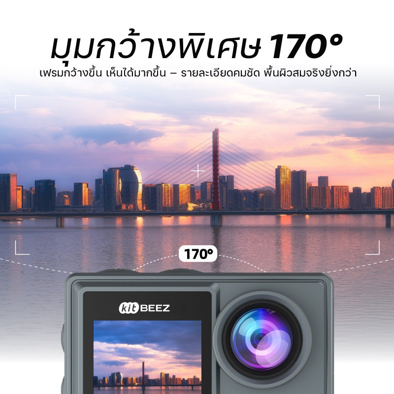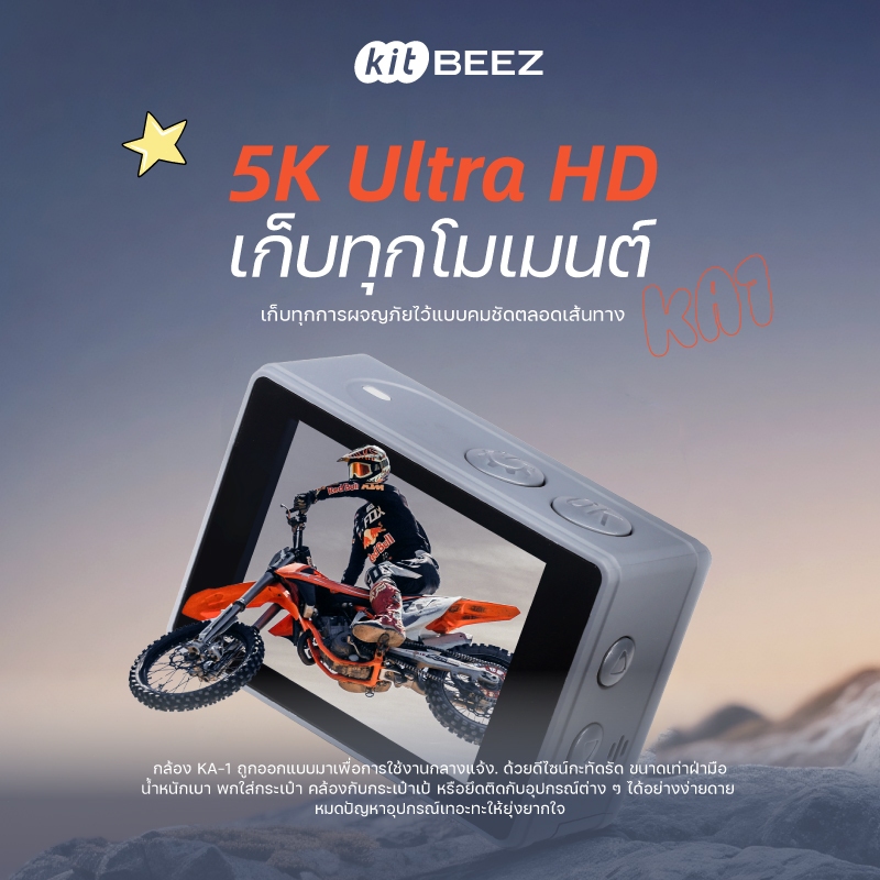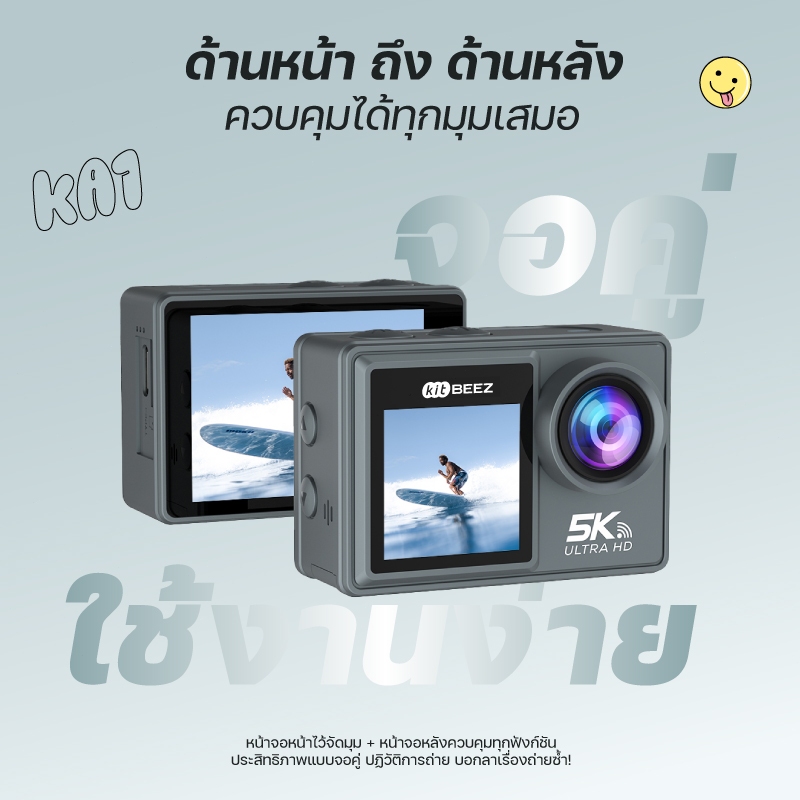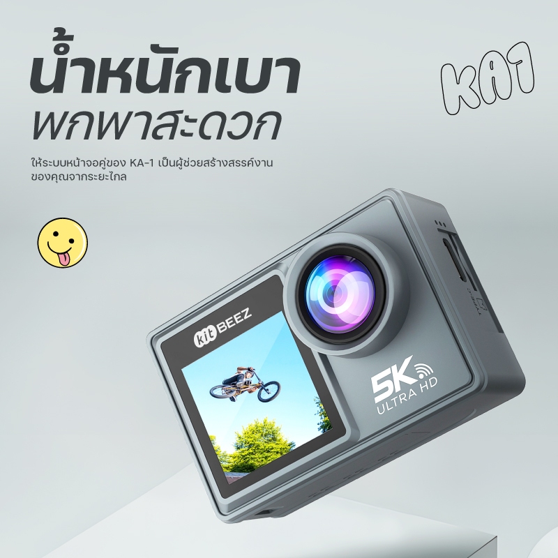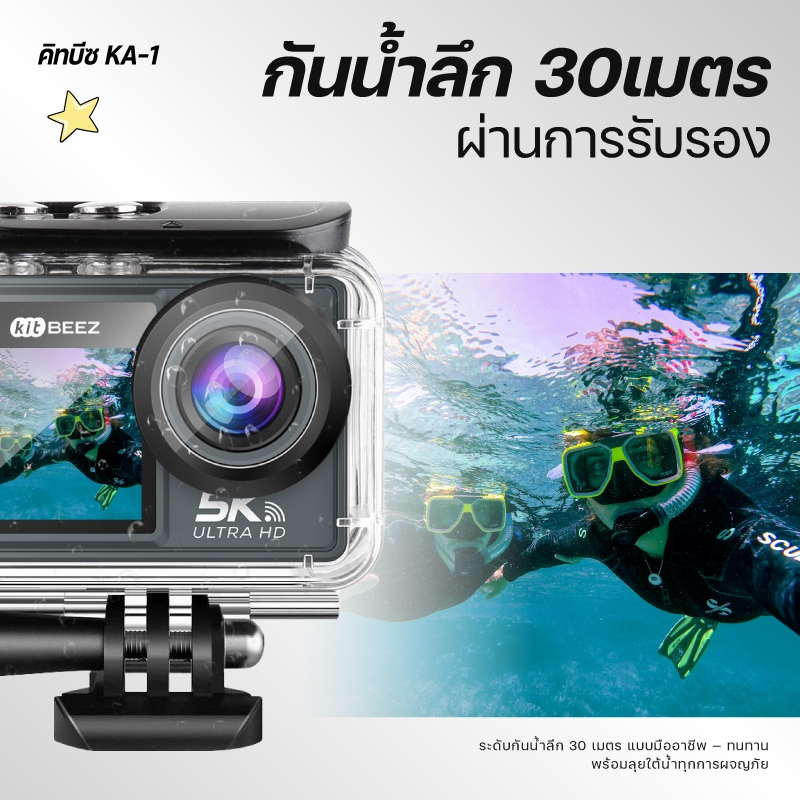 KiTBEEZ KA-1 กล้องแอคชั่น กล้องโกโปร กันน้ำกันสั่น หน้าจอสัมผัส 5K 30fps WiFi Action Camera กล้องติดหมวกกันน็อคพร้อมรีโม