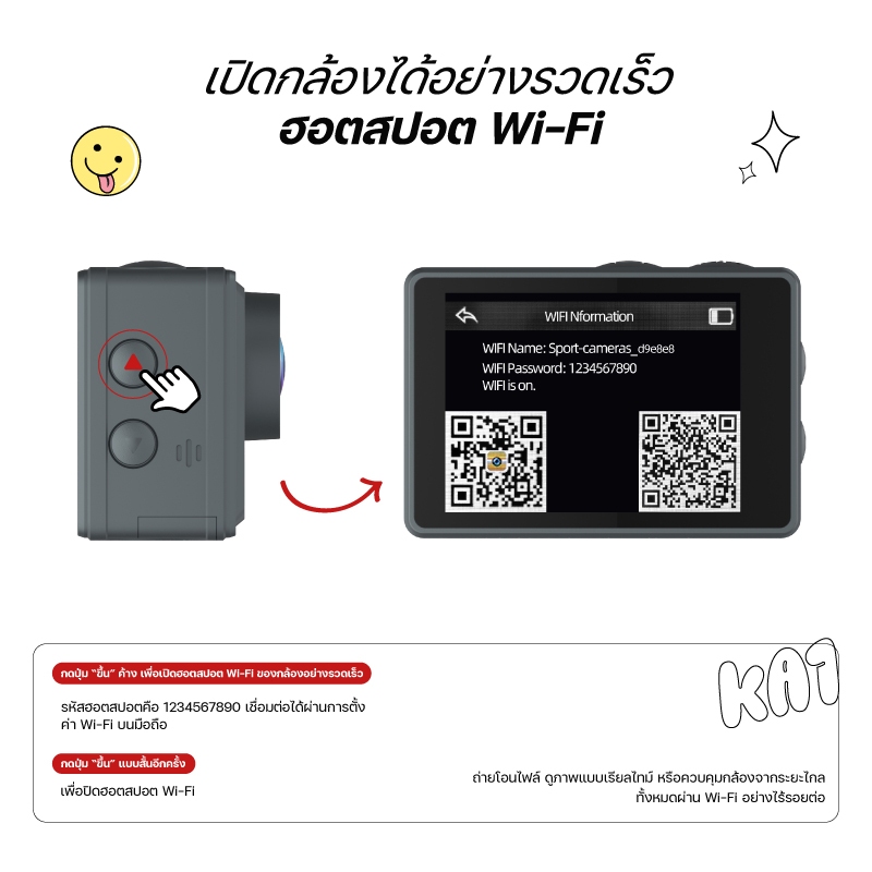 【กันน้ำ】KiTBEEZ KA-2 Pocket Action Camera Gopro WiFi กล้องถ่ายvlog 4K กล้องแอ็กชัน หมุนได้270° กับซองกันน้ำ กล้องติดตัว