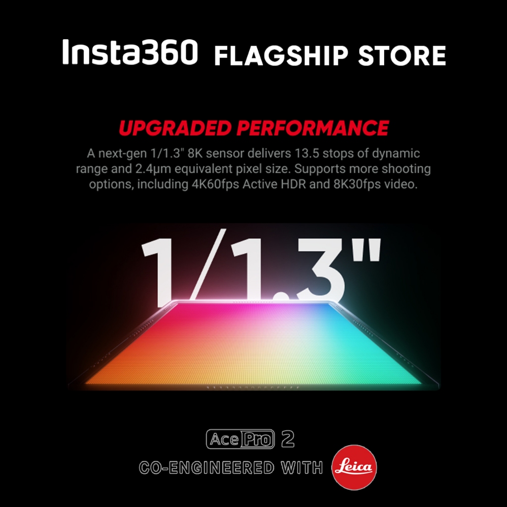 【ใหม่ล่าสุด】Insta360 Ace Pro 2 Action Camera Black กล้องแอคชั่น8K Waterproof Action Camera with Leica, 1/1.3″ Sensor