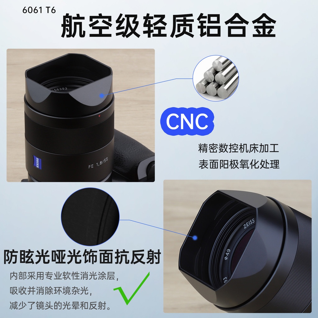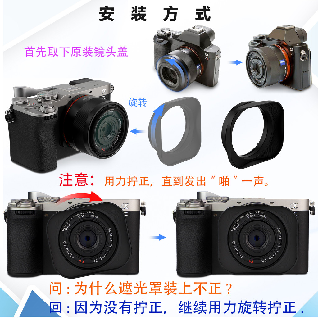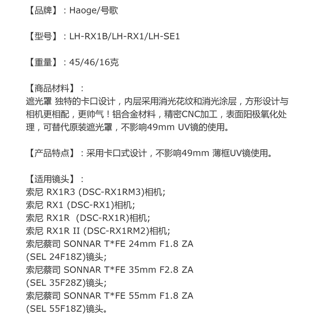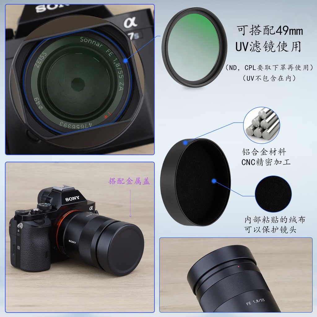 [จัดส่งด่วน] เบอร์ เพลงสําหรับ Sony DSC-RX1RM3 สีดํากล้องโลหะ Square Hood rx1R2X1R III fe 35mmf2.8 55 1.8 เลนส์อุปกรณ์เสริม Mount ใช้งานร่วมกับ 49UV กระจก