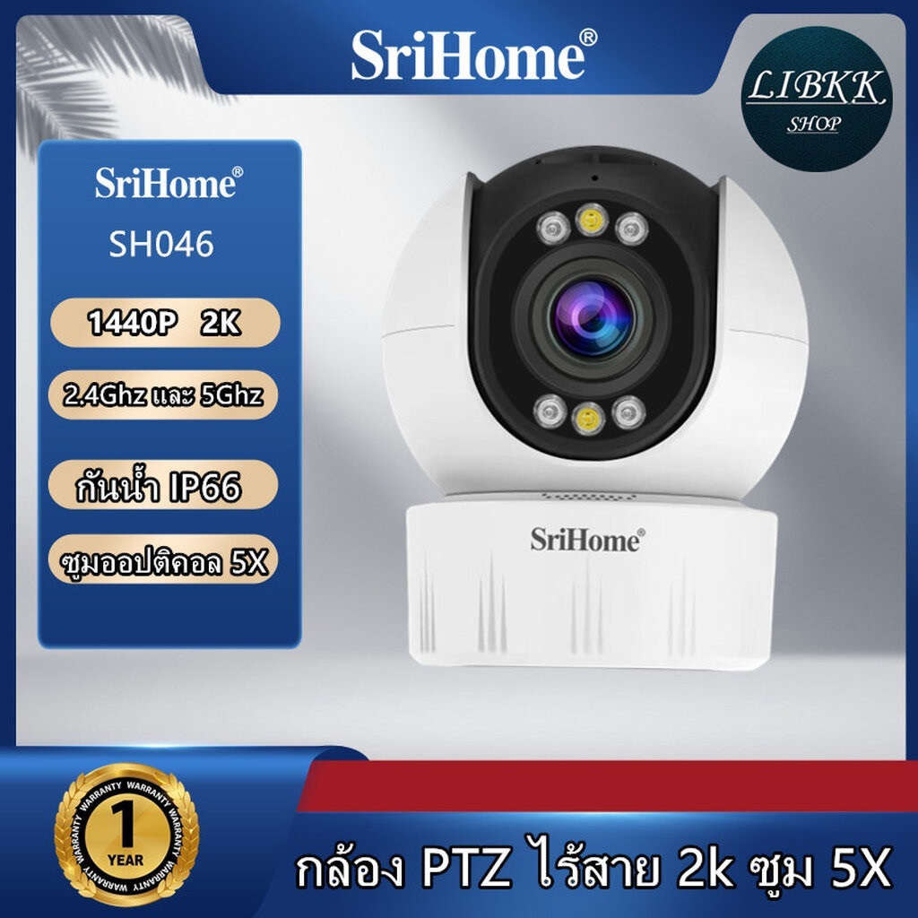 (4MP 2K) SriHome SH046 5X OPTICAL ZOOM กล้องวงจรปิด กล้องวงจรปิดไร้สาย ip camera Night Vision – 5G Wifi IP Securi…