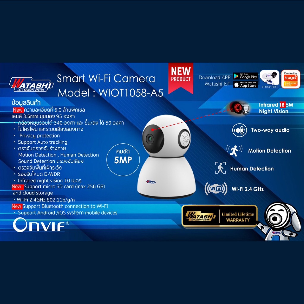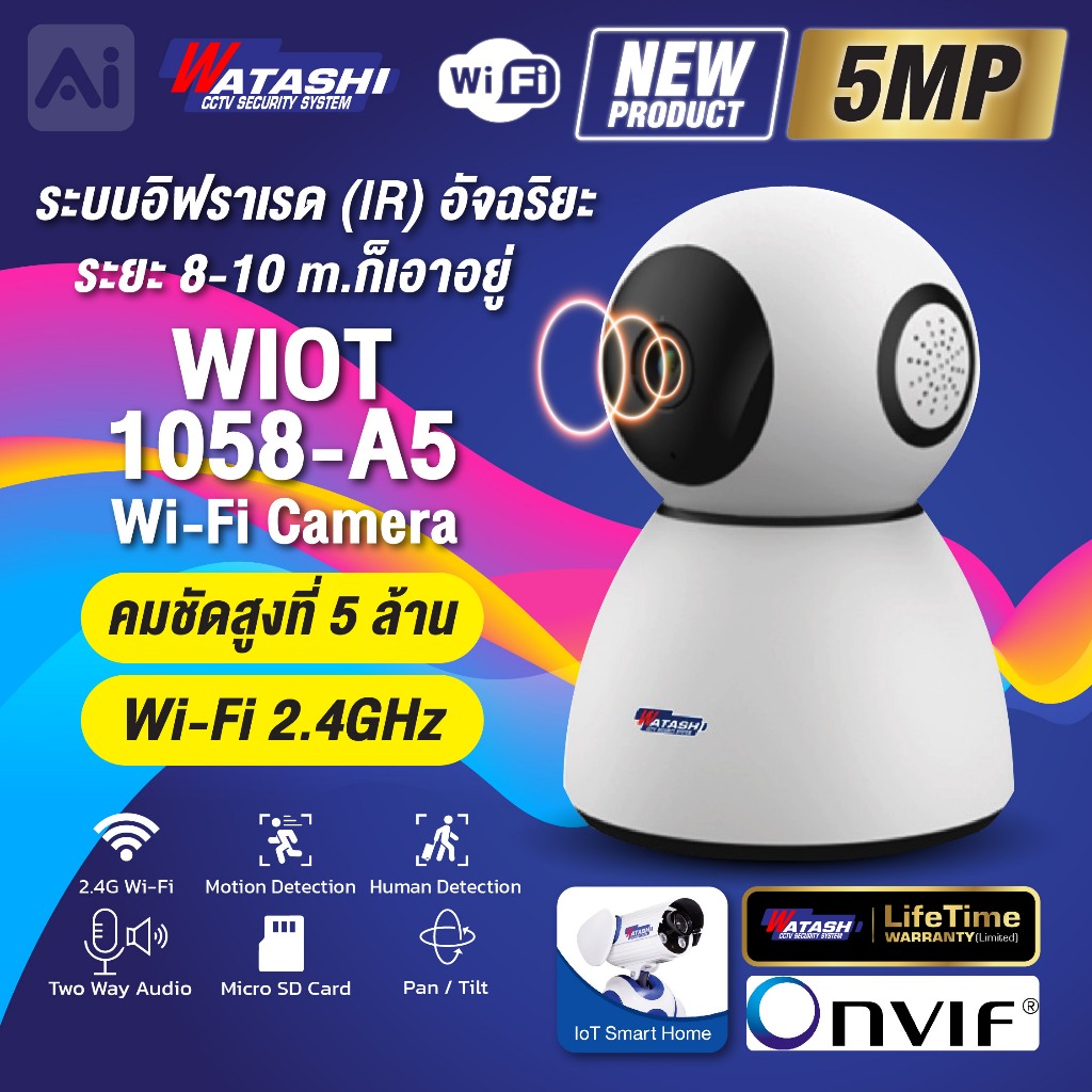 (ใหม่) Watashi iot รุ่น WIOT1058-A5 คมชัด 5 ล้าน พูดคุยโต้ตอบ มีตรวจจับมนุษย์ ประกันlifetime