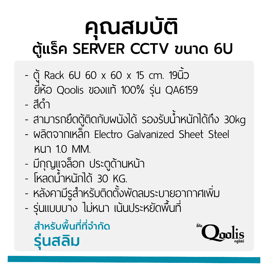 สีดำ 41001 ตู้แร็ครุ่น QA6159 ขนาด 6U Qoolis แท้ 100% Wall rack รุ่นสลิม