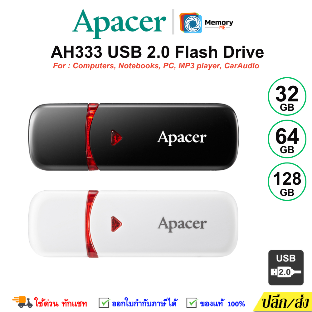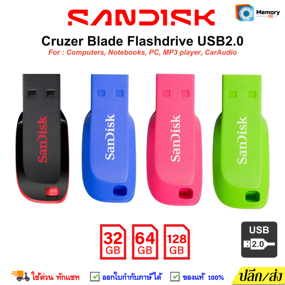 (ส่งด่วน) SANDISK/APACER FlashDrive 32GB/64GB/128GB (USB2.0) แฟลชไดร์ฟ แฟลชไดร์ Cruzer BLADE ของแทั