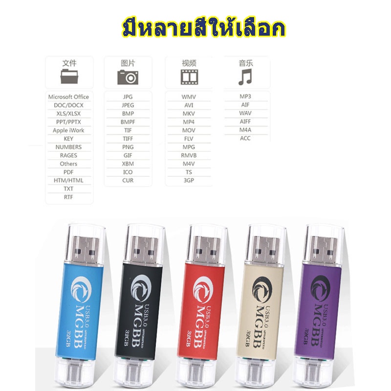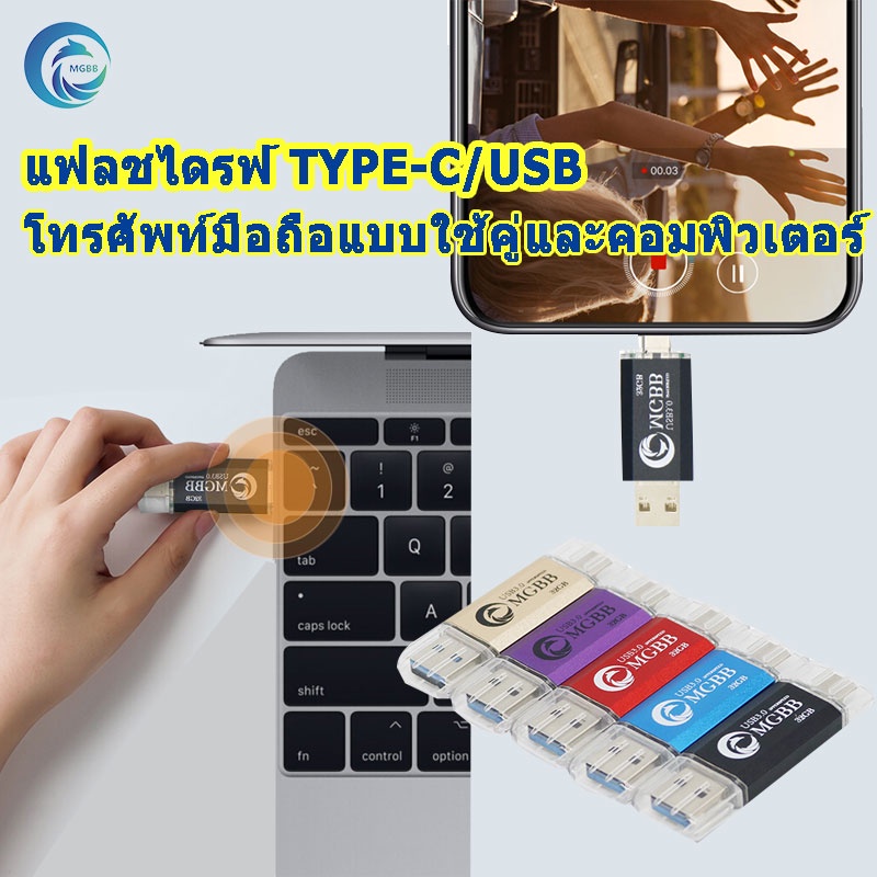 MGBB หกสีให้เลือก 32GB 64GB 128GB แฟลชไดรฟ์โลหะแฟลชไดรฟ์ U ดิสก์กันน้ำความเร็วสูงกันน แฟลชไดรฟ์ ความเร็วสูง Usb C 2 in 1 Otg Pendrive 512GB สําหรับโทรศัพท์มือถือ