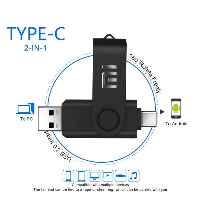 Original Xiaomi 3 in 1 USB ความเร็วสูง Type-c & Micro USB 2.0 PenDrive 4GB 1TB 2TB แฟลชไดรฟ์จัดเก็บข้อมูล OTG/ หน่วยความจําแท็บเล็ต + อะแดปเตอร์ Android ของขวัญฟรี