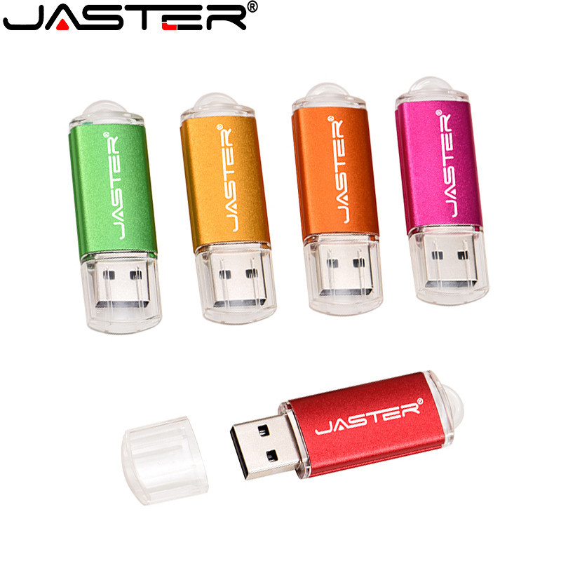 JASTER เงินคลิป USB แฟลชไดรฟ์ 128MB Memory Stick 512MB ไดรฟ์ปากกาสีสันสดใส 4GB ฟรีพวงกุญแจ USB Stick 8GB 16GB 32GB 64GB