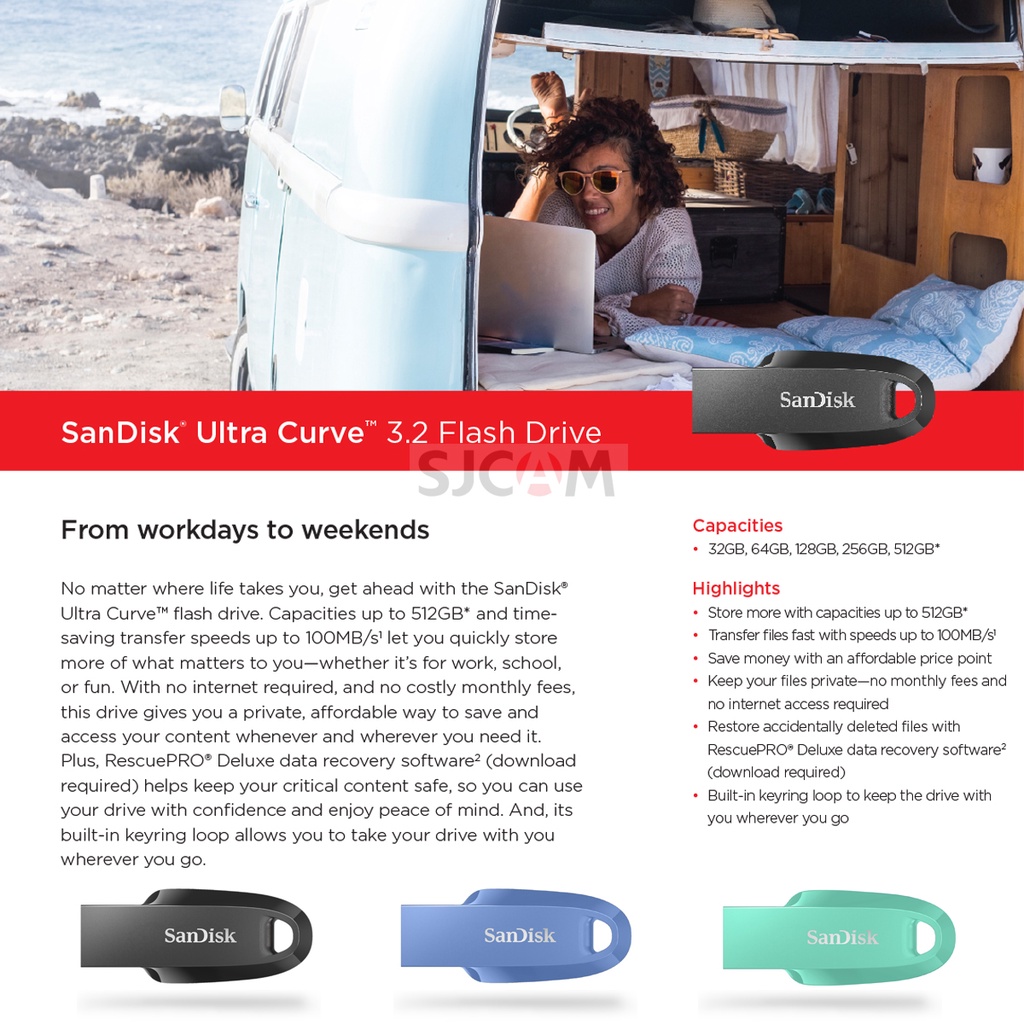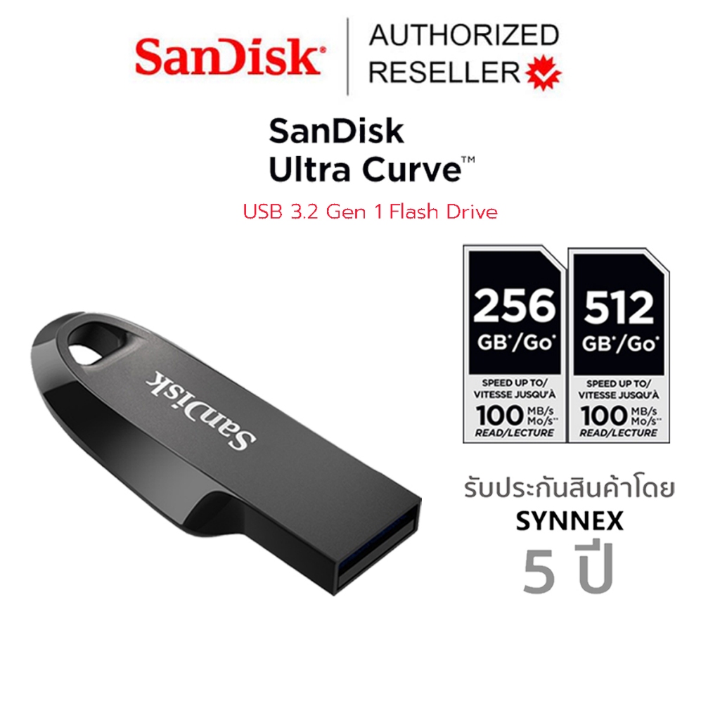 SanDisk Ultra Curve USB 3.2 Gen 1 Flash Drive ประกัน Synnex 5 ปี แฟลซไดรฟ์ (SDCZ550-256G-G46)