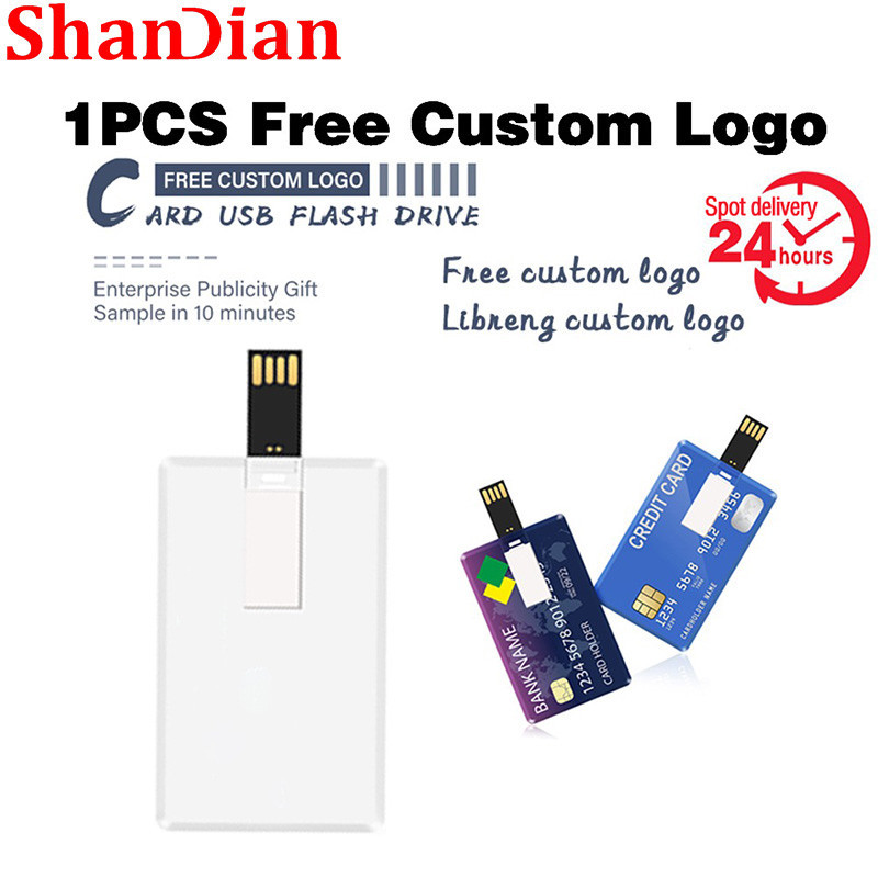 Shandian บัตรธนาคารแฟชั่น USB 2.0 แฟลชไดรฟ์ 128GB ฟรีโลโก้ที่กําหนดเอง Memory Stick 64GB ไดรฟ์ปากกาสีขาว 32GB พร้อมการออกแบบส่วนบุคคลจัดเก็บข้อมูลภายนอก 16GB การ์ดหน่วยความจําการ์ด 8GB