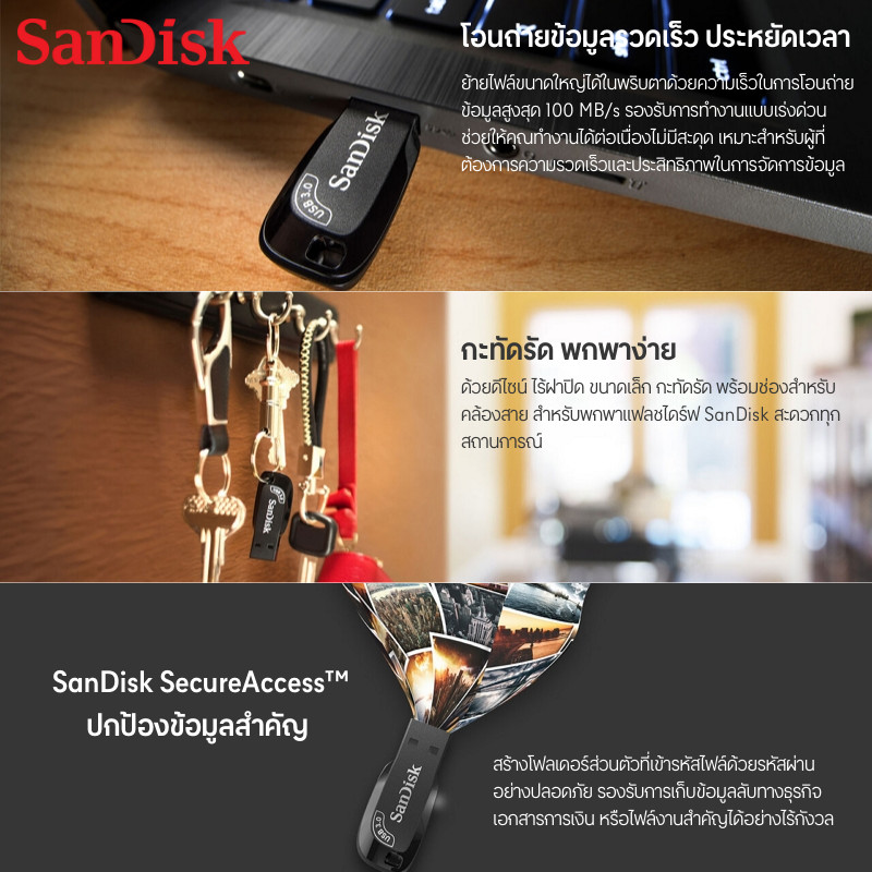 SANDISK แฟลชไดร์ฟ รุ่น SDCZ410 สีดำ ความจุ 128GB