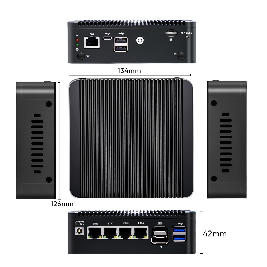 12th Gen Intel N100 2.5G Soft Router 4x i226-V LAN 1*COM RJ45 Fanless Mini PC Firewall คอมพิวเตอร์ Type-C pfSense OPNsense PVE ESXi
