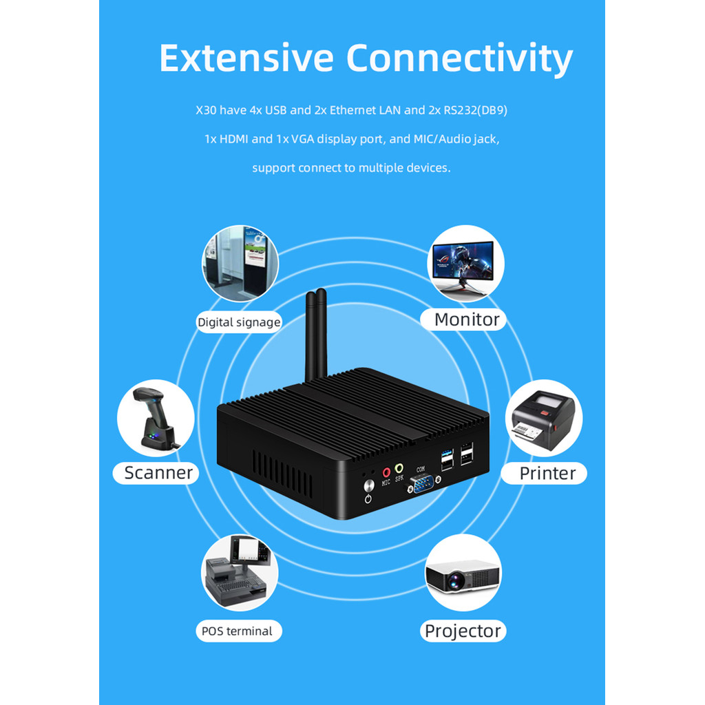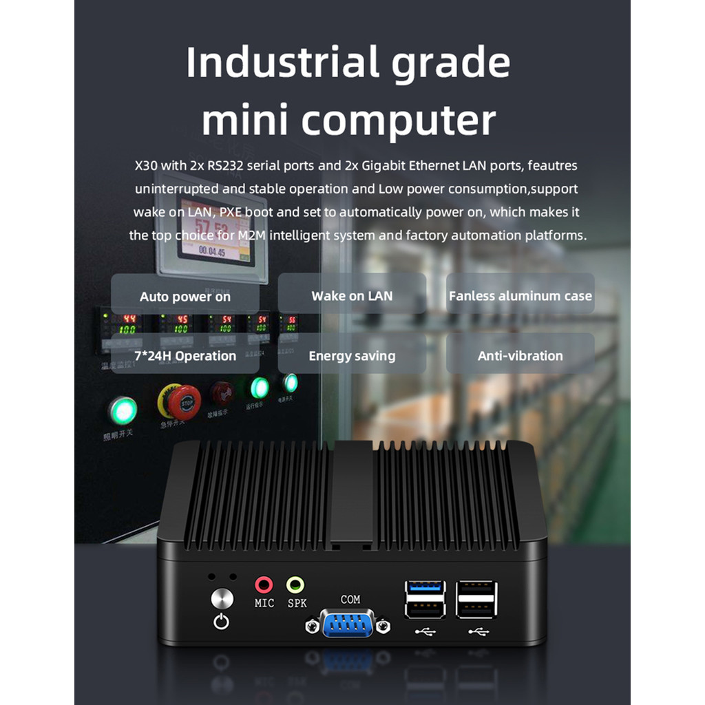 Fanless Mini PC J1900 Quad-Cores 2.0GHz 2x RS232 2x LAN Linux Embedded IoT Industrial Computer