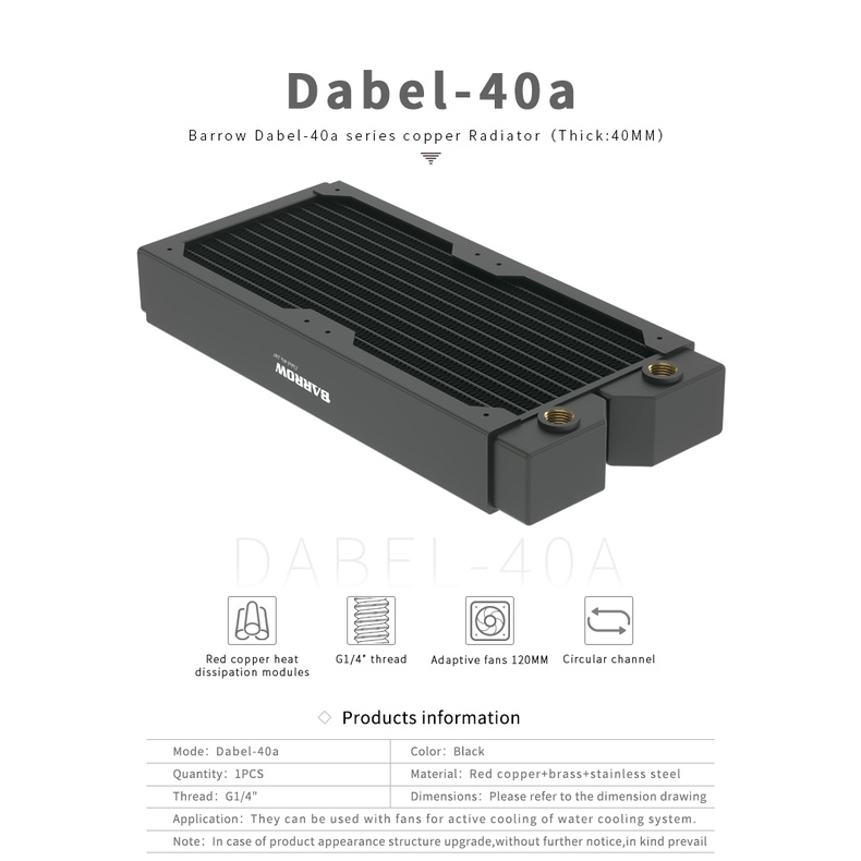 Barrow หม้อน้ําทองแดงความหนา 40 มม., เหมาะสําหรับพัดลม 120 มม., PC water cooling อุปกรณ์เสริม , Dabel-40a 240/360/480