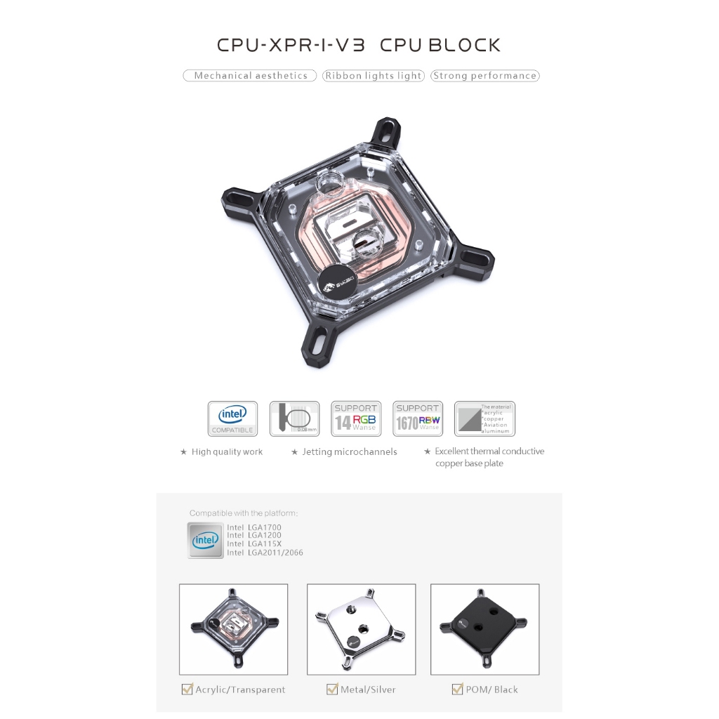 Bykski CPU Block ใช้สําหรับ INTEL LGA115X 1200 1700 2011/AMD Ryzen 3/5/7 X470 X570 Water Cooler หม้อน้ํา CPU-XPR-CU-I/M-V3