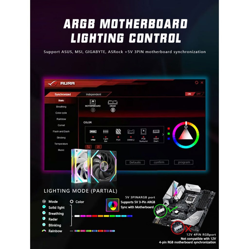 ARGB Prism 9PRO พัดลมเคส PC ประสิทธิภาพสูง พัดลมเคสคอม 5V 3PIN PWM 120mm เคสคอมพิวเตอร์ cooling fan