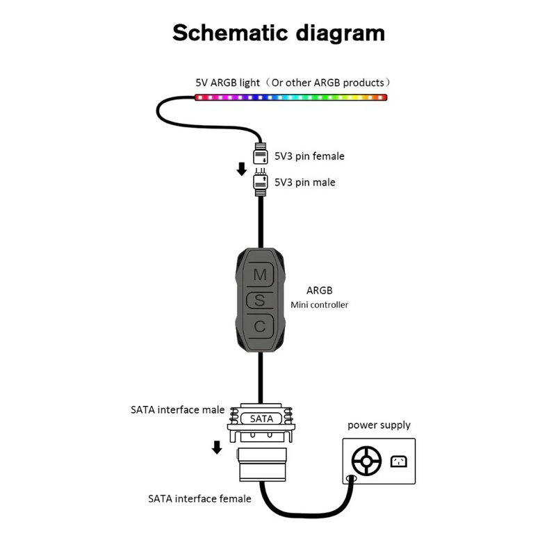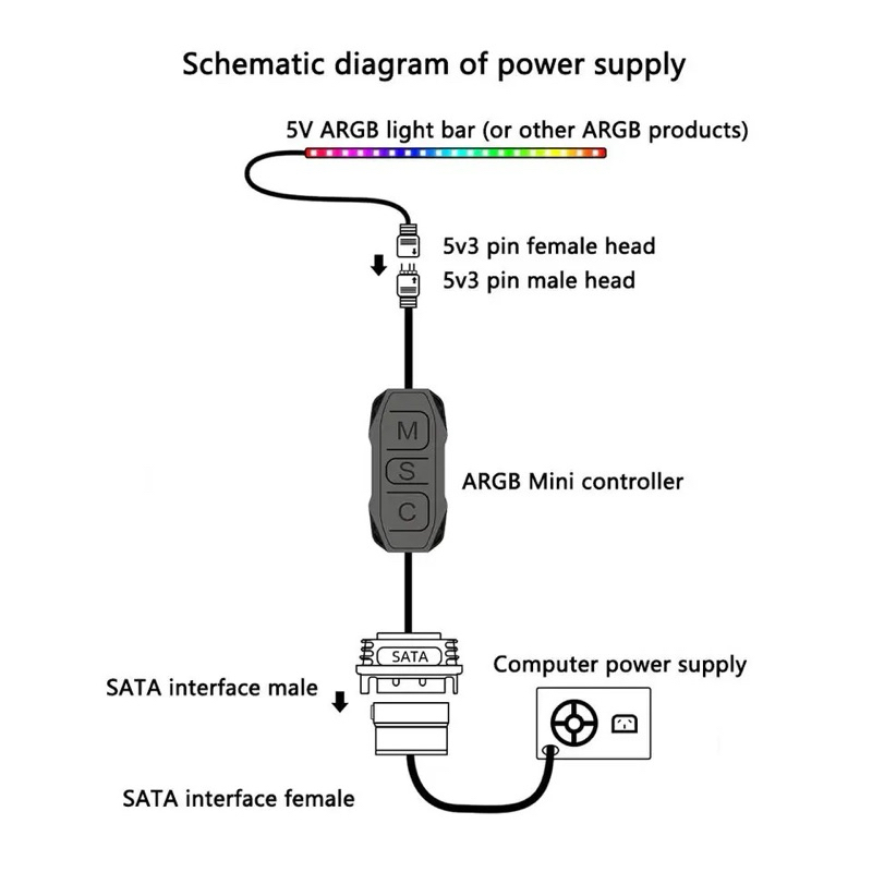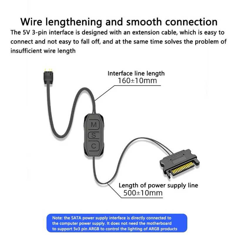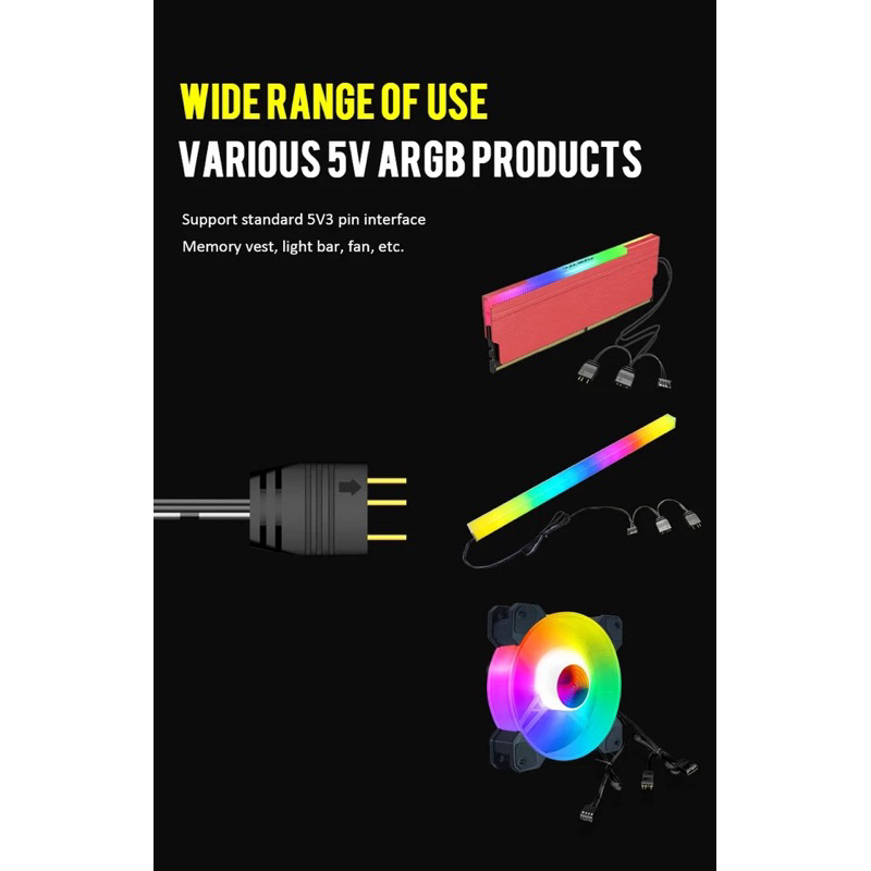 5V 3 Pin 3pin To SATA ARGB Mini Adapter Controller HUB พัดลมคอมพิวเตอร์ LED CPU Cooler Water Cooling RGB ควบคุมสาย