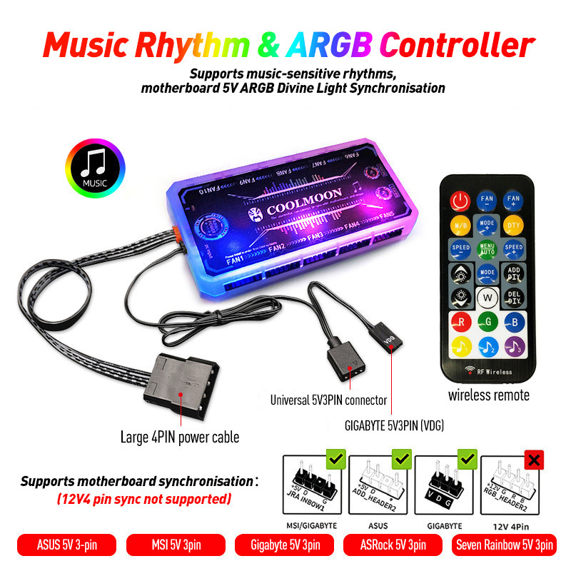 5V 3 Pin ARGB Controller PWM พัดลม Hub 1 ถึง 9 พอร์ต 3 ใน 1 พัดลมระบายความร้อน Hub 4 Pin PWM แม่เหล็กดูด Hub สําหรับคอมพิวเตอร์พีซีกรณีพัดลม