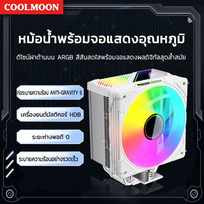 Coolmoon CPU COOLER GT600 Digital ARGB CPU Air Cooler 6 Heatpipe Infinity Mirror ฝาครอบด้านบน 5V 3PIN