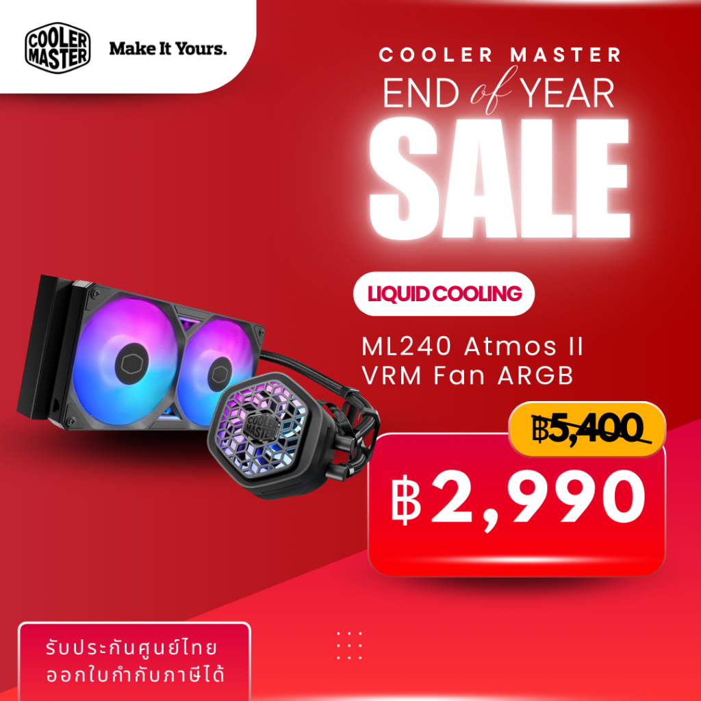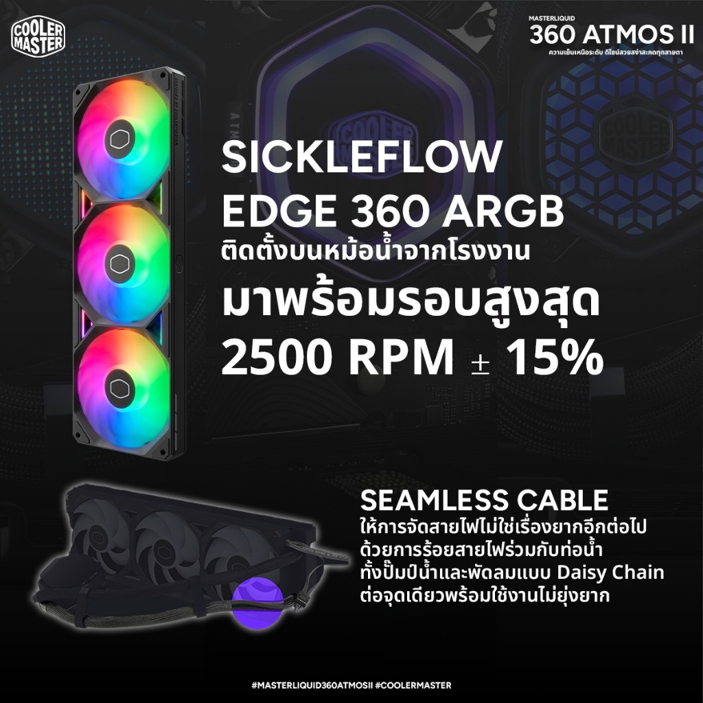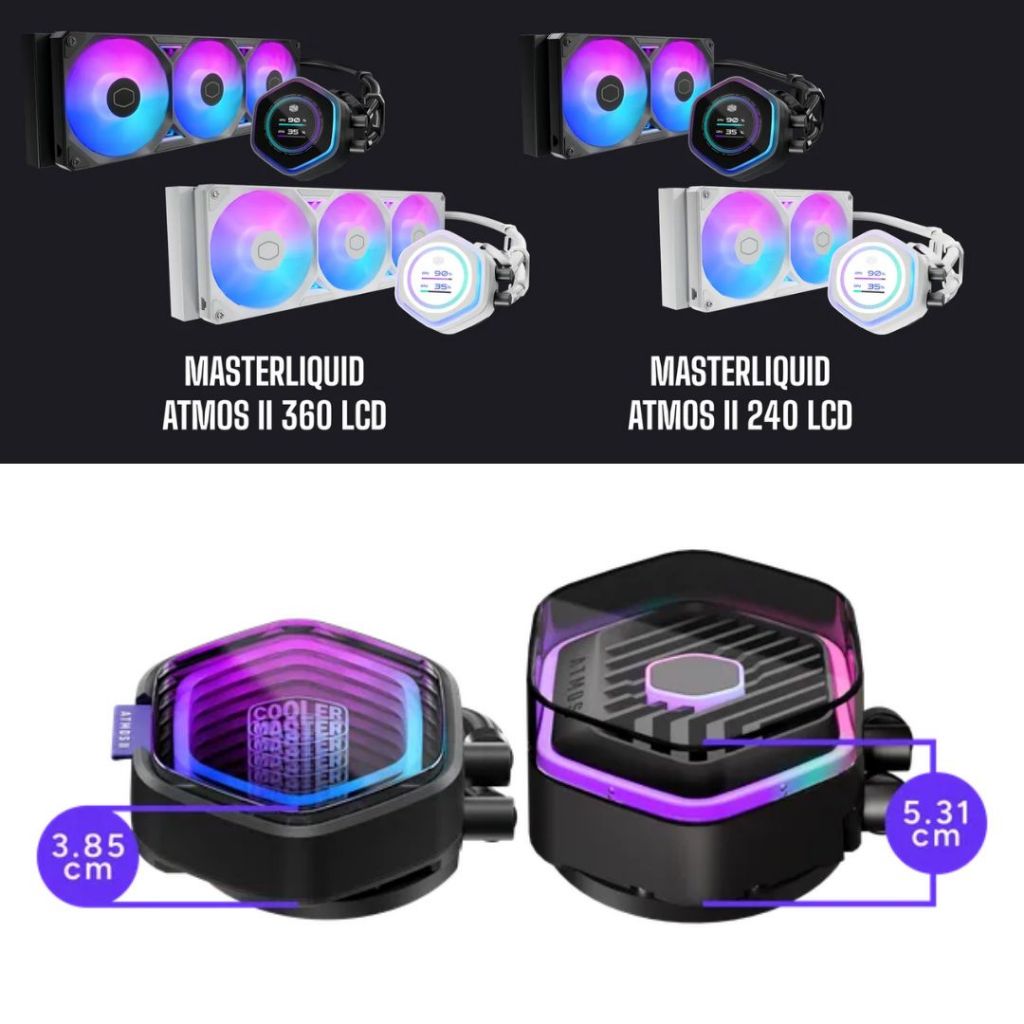 Cooler Master MasterLiquid Atmos II ชุดน้ำปิดระบายความร้อน CPU (VRM Fan / LCD / Pixel LED) ARGB