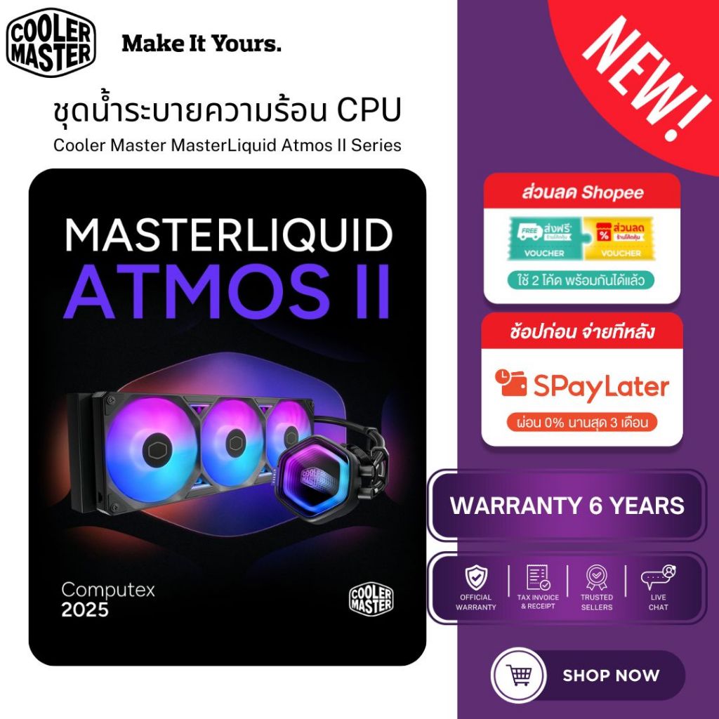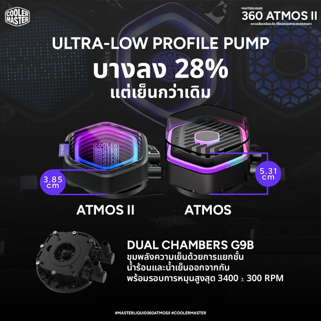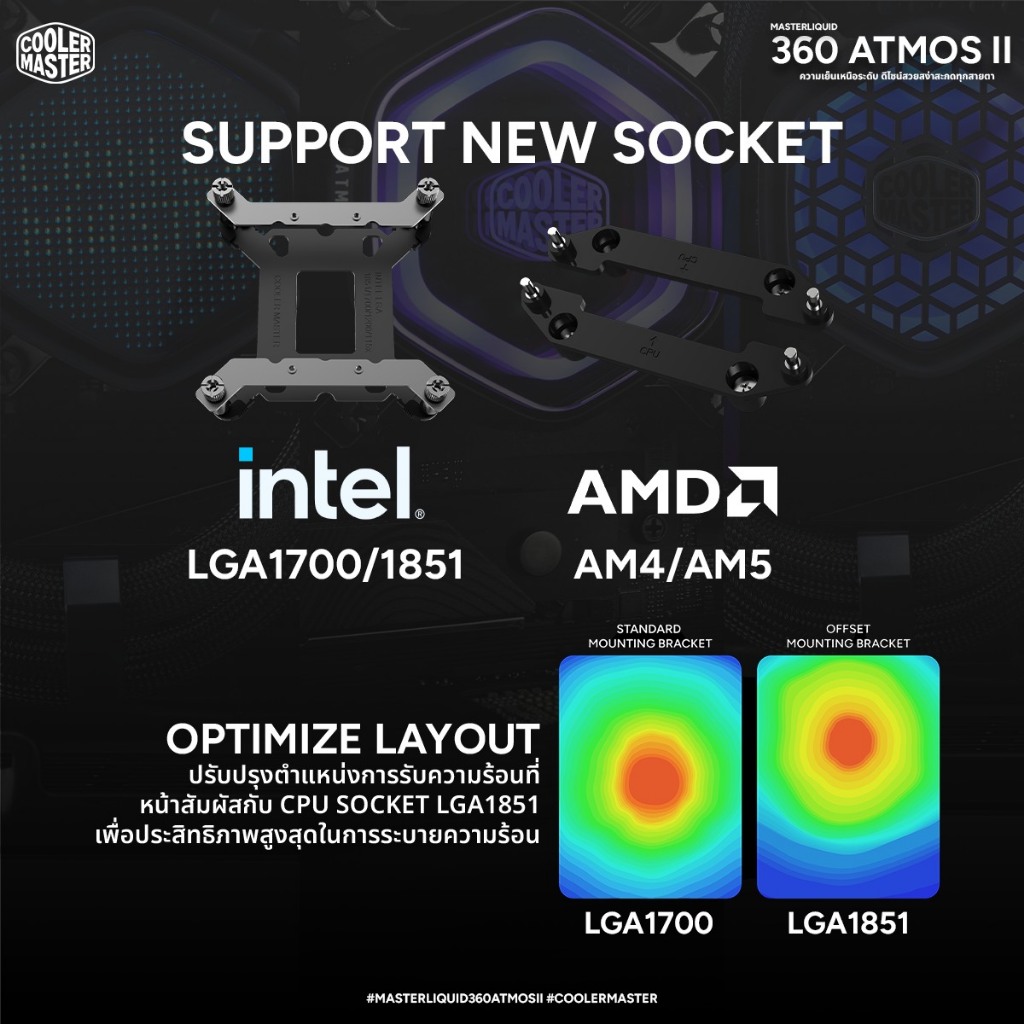 Cooler Master MasterLiquid Atmos II ชุดน้ำปิดระบายความร้อน CPU (VRM Fan / LCD / Pixel LED) ARGB