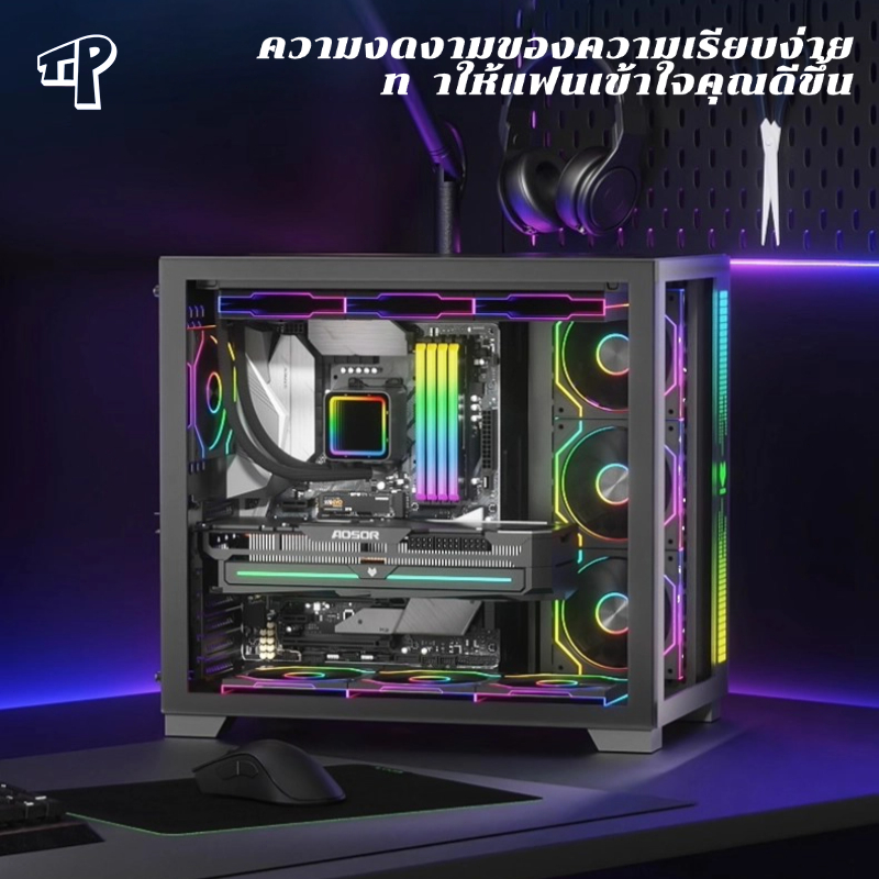 3in1 ชุด Daisy เคสคอมพิวเตอร์พัดลมระบายความร้อน ARGB Lighting Sync กระจกวงจรเอฟเฟกต์แสง PWM ควบคุมอุณหภูมิพัดลมประกบไร้สายหม้อน้ํา CPU