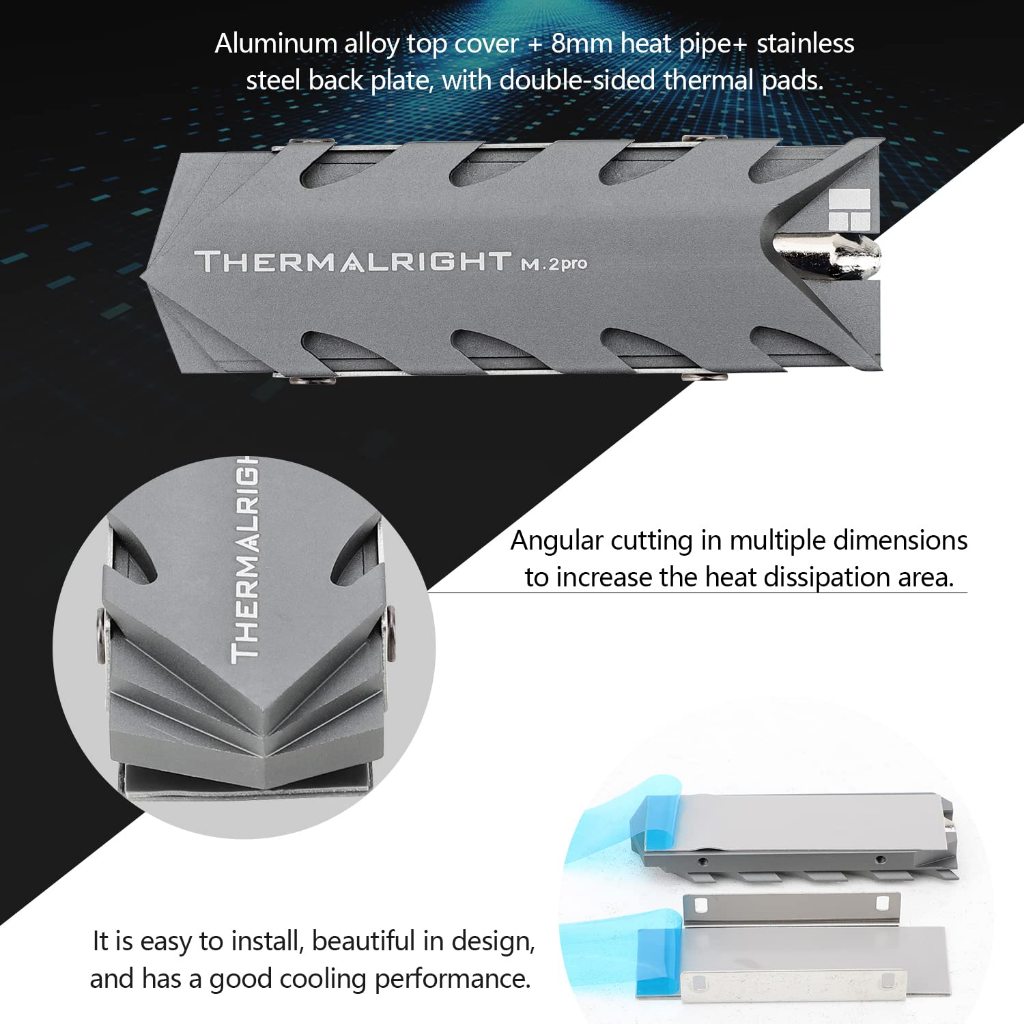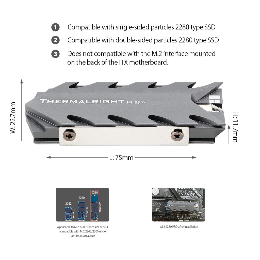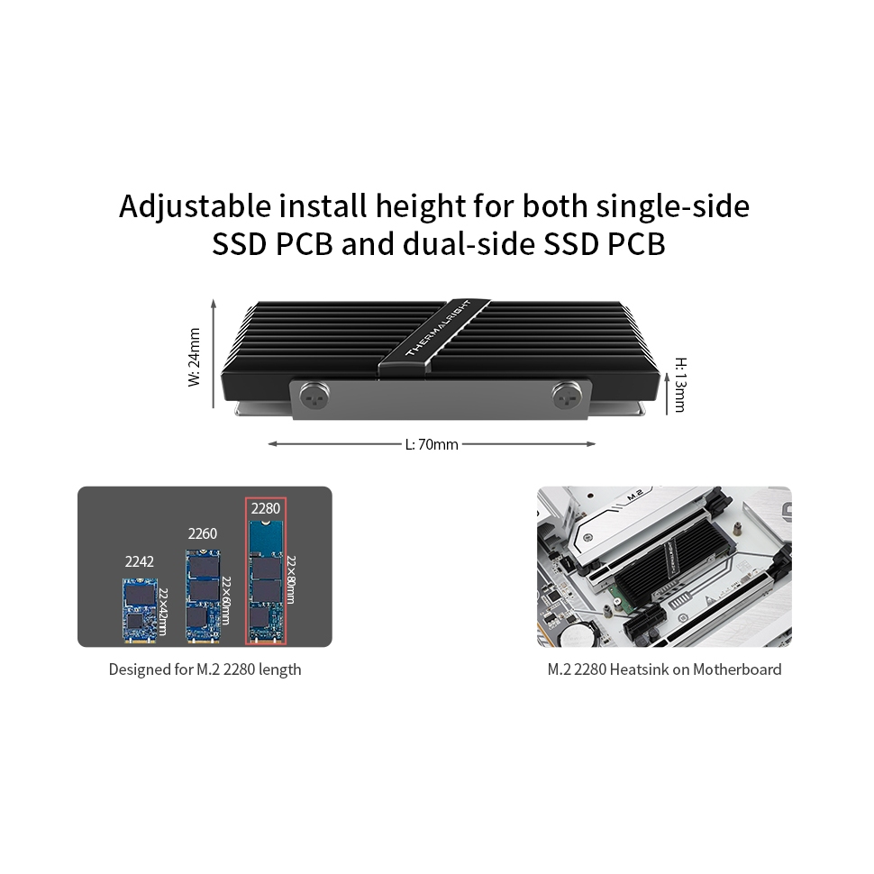 Thermalright M.2 2280 SSD ฮีทซิงค์ PRO อลูมิเนียม SSD Solid-state Hard Drive Disk ฮีทซิงค์ Cooling สําหรับ M.2 22*80 มม.Cooler