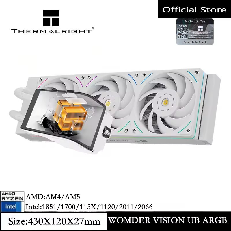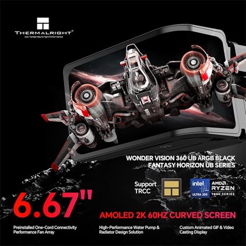 Thermalright Wonder Vision 360 UB ARGB CPU Water Cooler 6.67 นิ้ว LCD หน้าจอโค้ง 3D 2K ความละเอียดภาพเคลื่อนไหว DIY CPU Liquid Cooler สีขาวสําหรับ AM4/AM5 Intel1851/1700