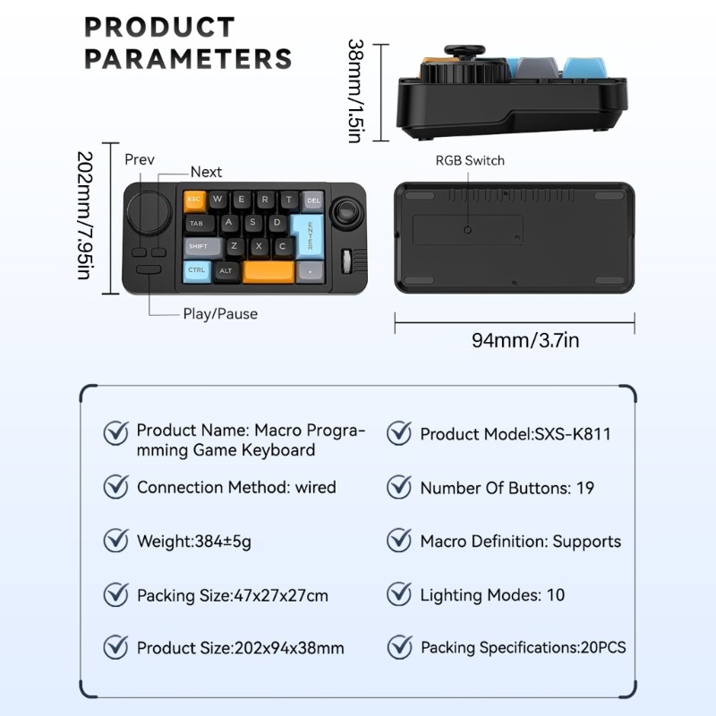 ROX 19 คีย์บอร์ดสําหรับเล่นเกมสีคีย์โปรแกรมจอยสติ๊ก Double Macroed ล้อ Hot Swappable Switches ประหยัดพื้นที่