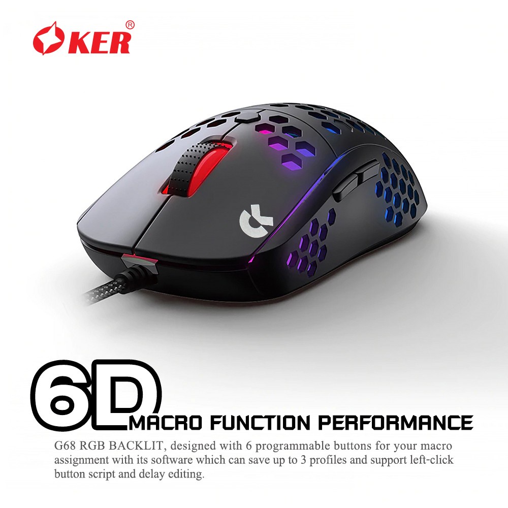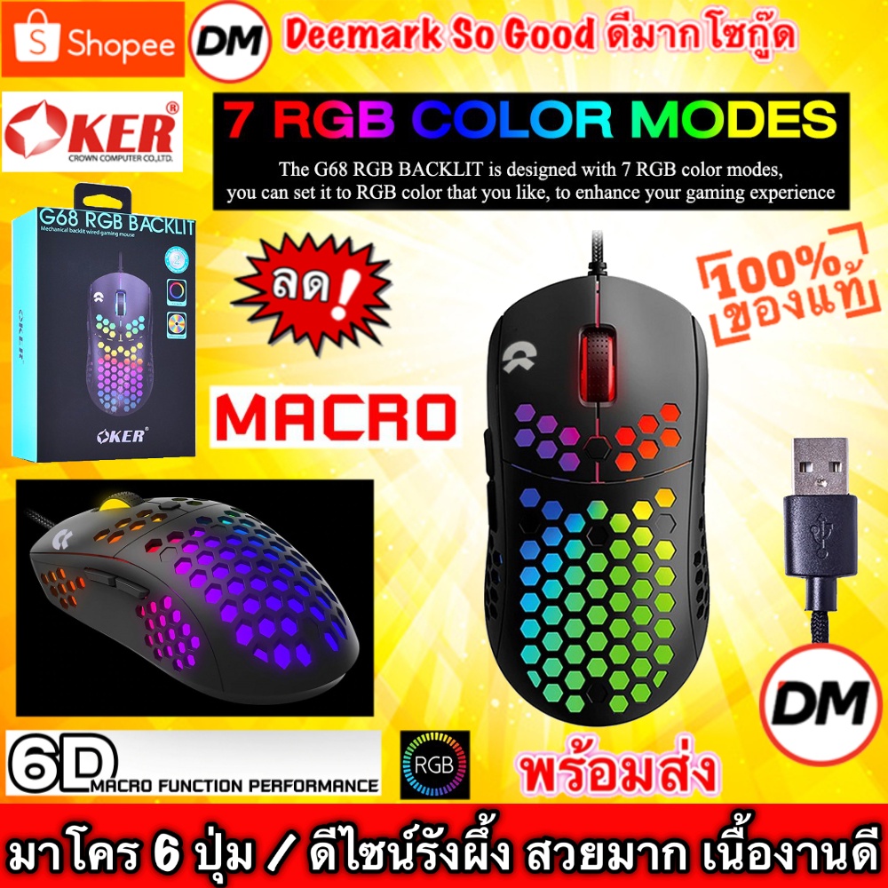 ?มาใหม่ ?ส่งเร็ว? OKER G68 RGB BACKLIT MACRO เมาส์ มาโคร 6 ปุ่ม ดีไซน์รังผึ้ง #DM 68