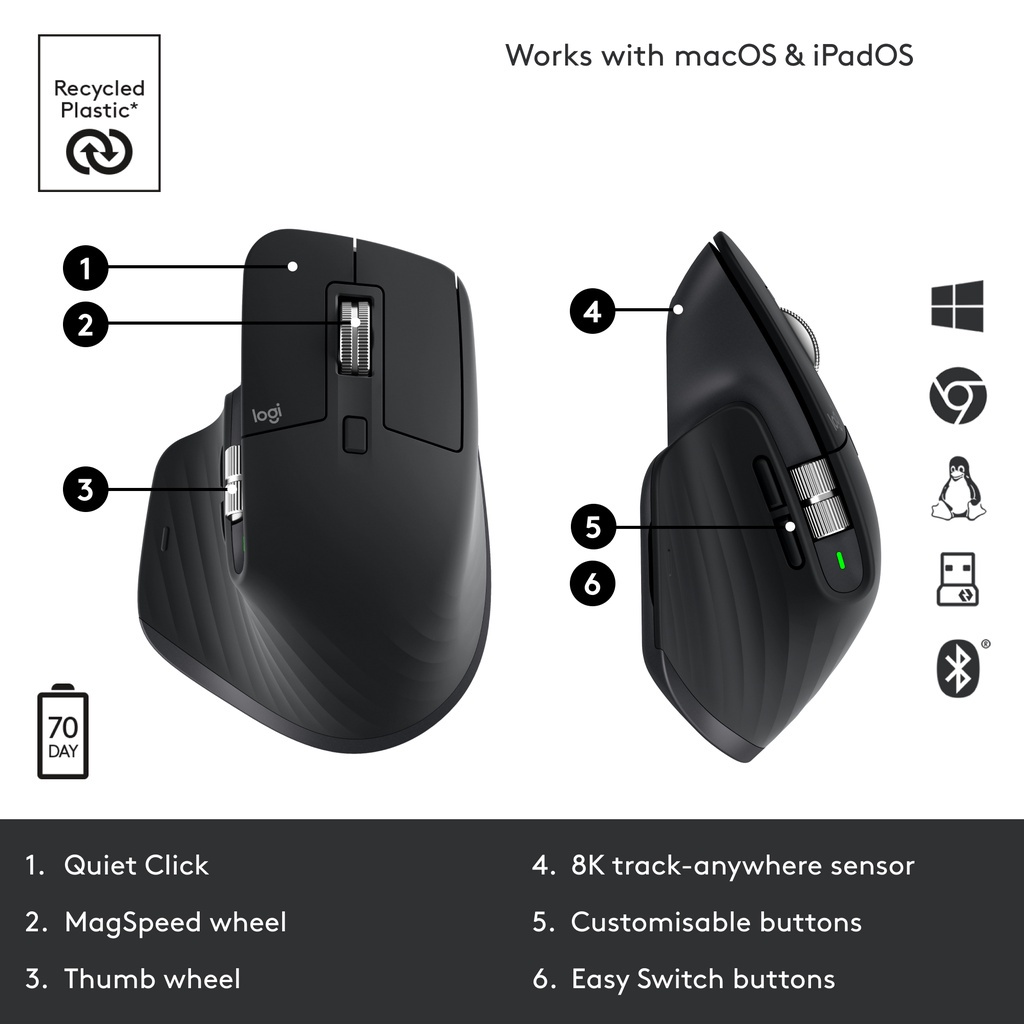 ?ขายดีมาก?⚡️เมาส์ไร้สาย⚡️ Logitech MX Master 3S Advanced Wireless Mouse – Graphite Warranty 1 – Y