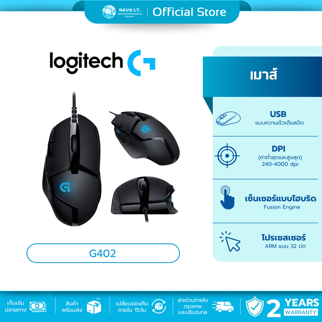 ?มีส่งด่วน? LOGITECH G402 HYPERION FURY FPS GAMING MOUSE เม้าส์สำหรับเล่นเกม รับประกันศูนย์ 2 ปี