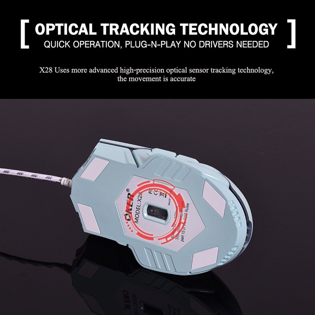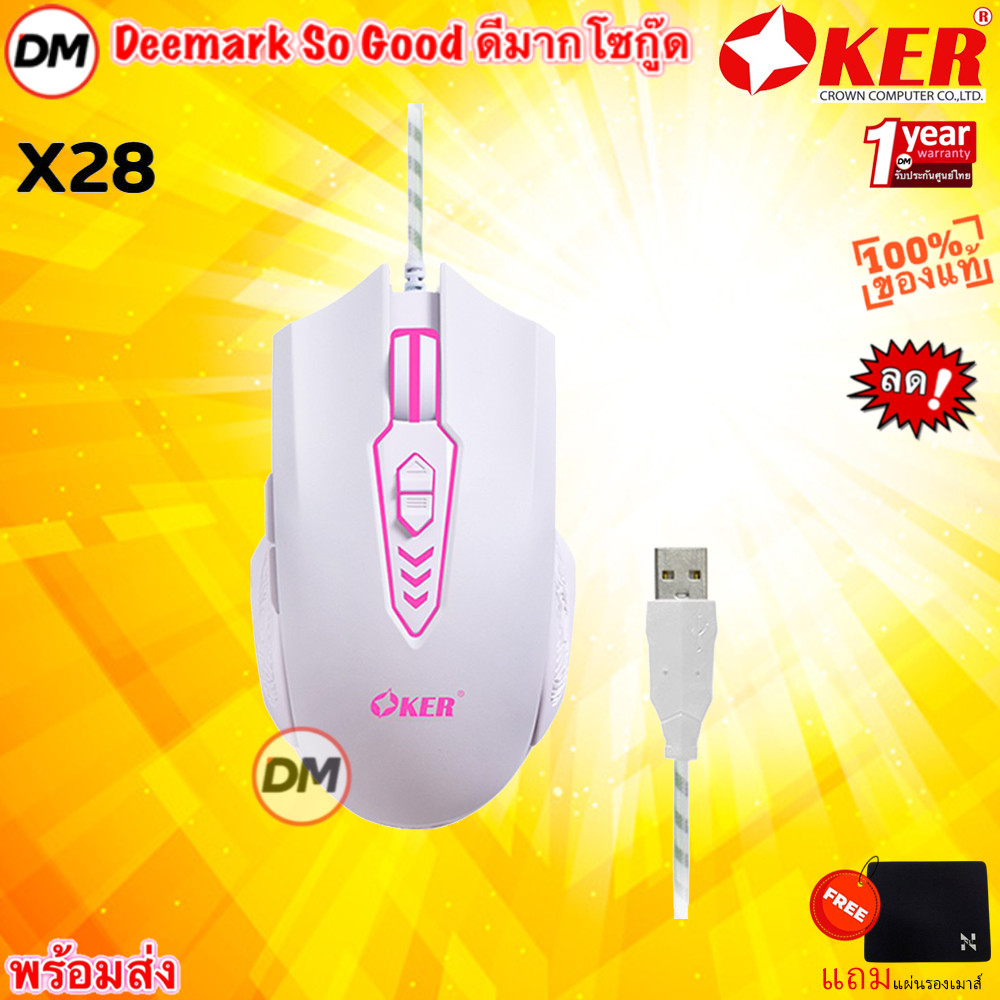 ?ส่งเร็ว? OKER X28 WHITE GAMING MOUSE 7D WIRED LED 6400 DPI เมาส์ไฟเรืองแสงหัวเสียบ USB รับประกัน 1ปี