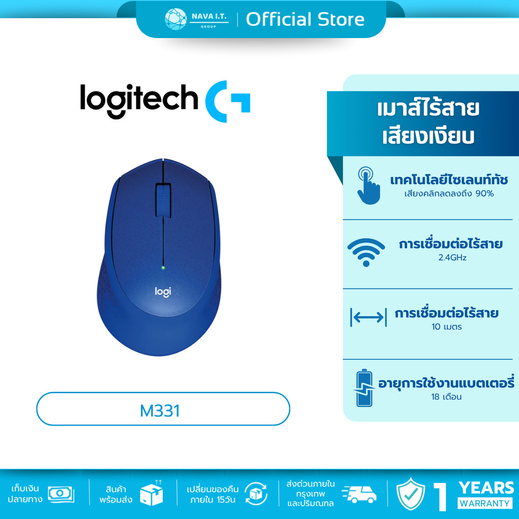 ?มีส่งด่วน? LOGITECH M331 เม้าส์ไร้สายไร้เสียง BLUE WIRELESS SILENT PLUS CORDLESS MOUSE (แพคเกจใหม่)