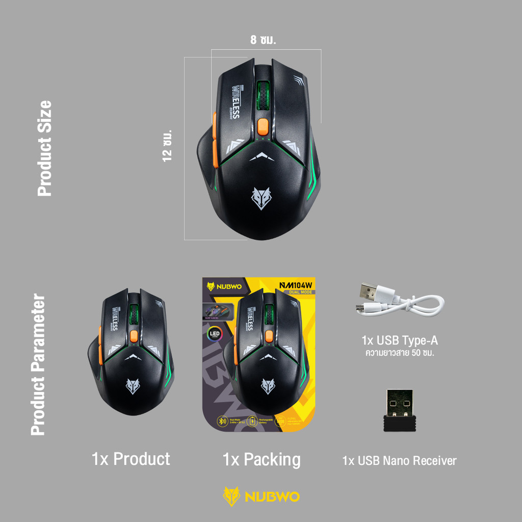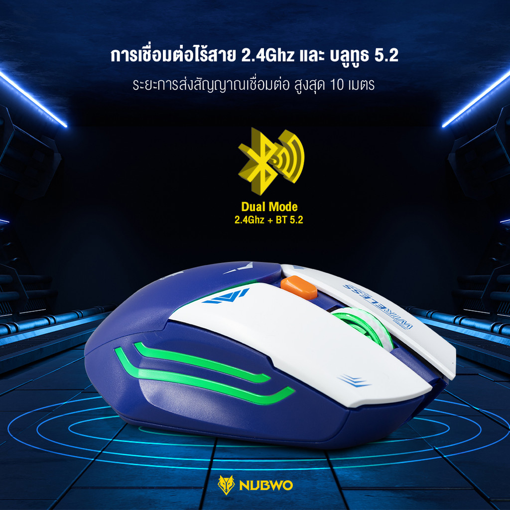 ? GAMING NUBWO NM-104W Wireless & Bluetooth Gaming Mouse Dual Mode เมาส์เกมมิ่ง ไร้สาย แบตในตัว มีไฟLED เมาส์ไร้สาย 104
