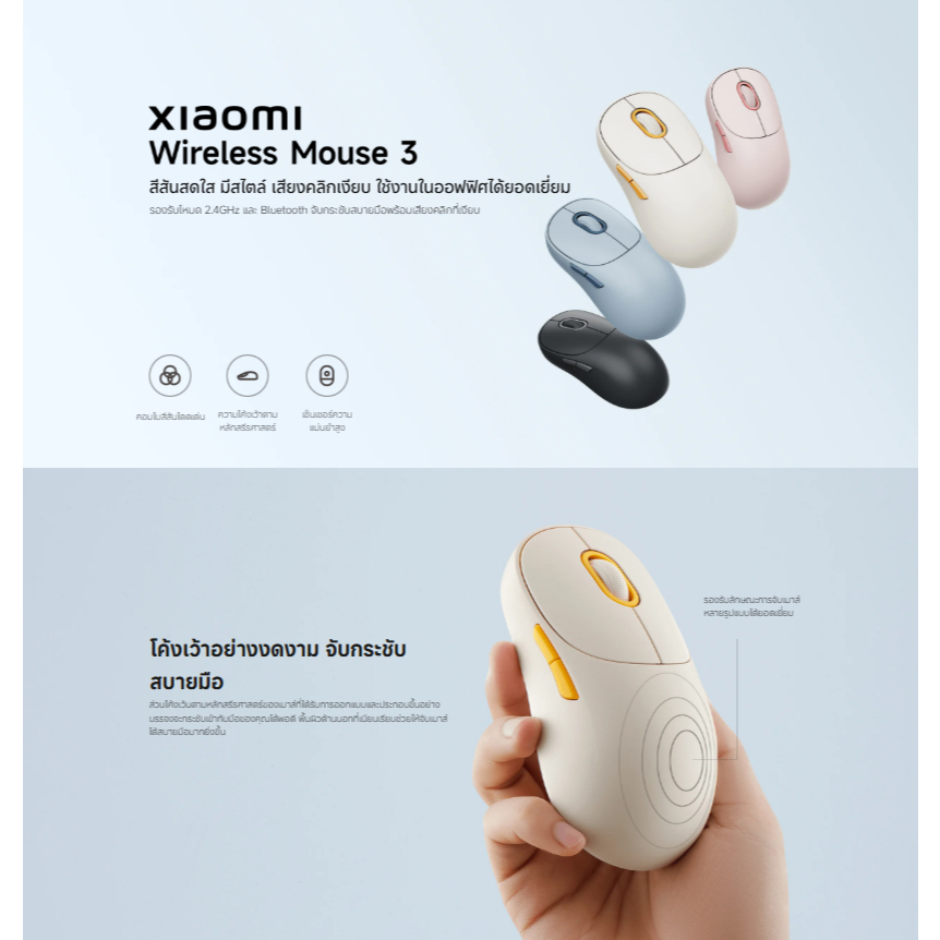 (NEW) Xiaomi Wireless Mouse 3 โหมด 2.4GHz และ Bluetooth คู่ จับที่สะดวกสบายและการคลิกเงียบ เซ็นเซอร์ความแม่นยําสูง
