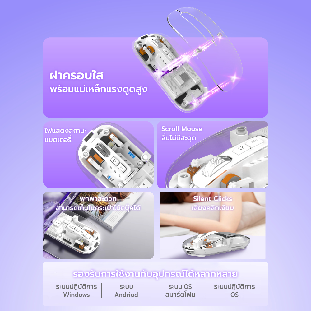 [Rock Doraemon Wireless Transparent Mouse] เมาส์ไร้สาย โดเรม่อน ดีไซน์โปร่งใส Mouse เมาส์บลูทูธ เสียงเงียบ ลิขสิทธิ์แท้