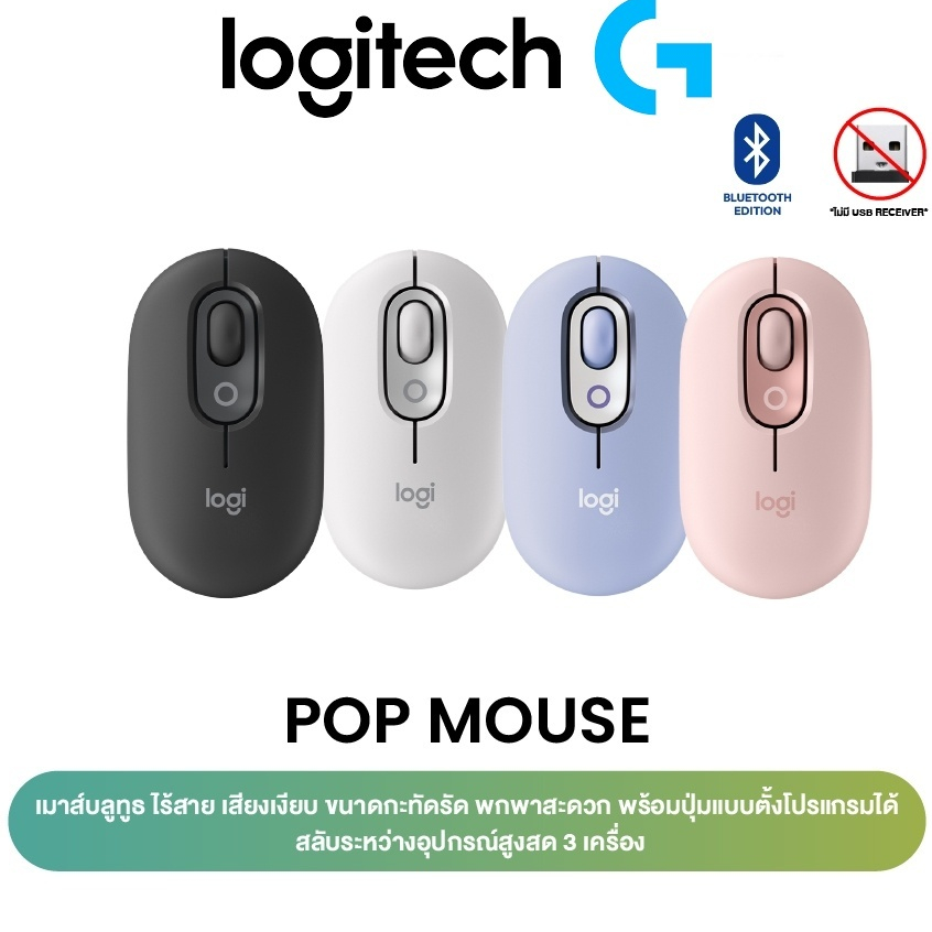 ?ขายดีมาก?Logitech POP Wireless Mouse with Emoji Bluetooth เมาส์บลูทูธ ไร้สาย ขนาดกะทัดรัด พกพาสะดวก