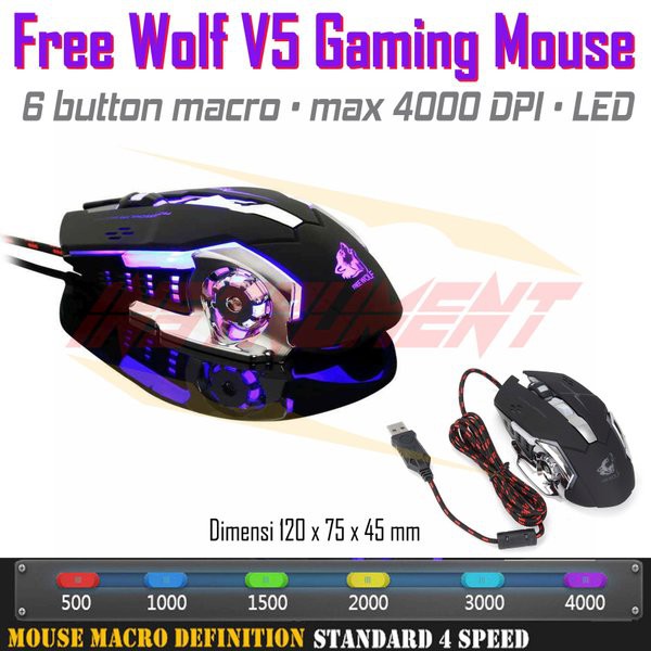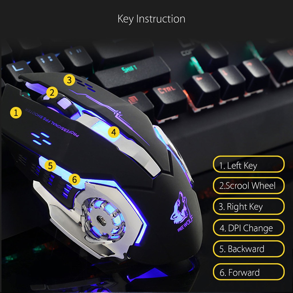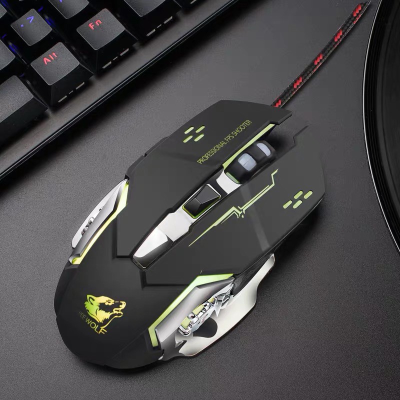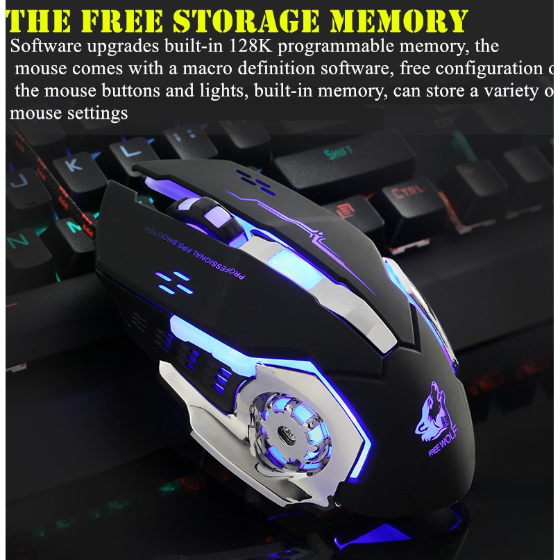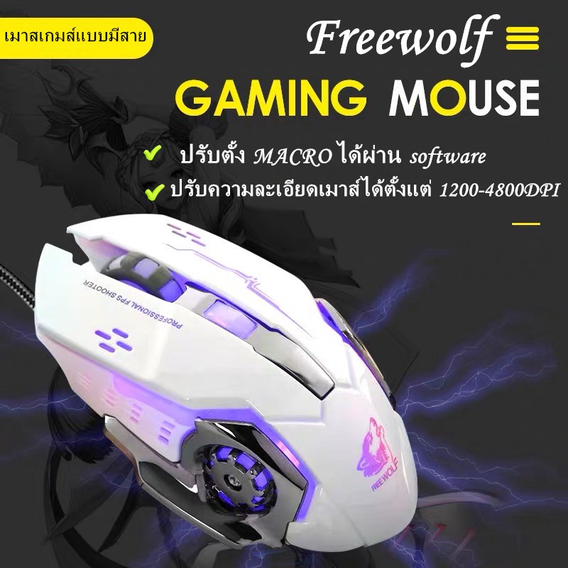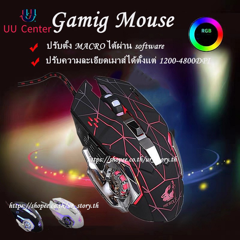 เมาส์ Freewolf V5 เมาส์เกมมิ่ง เม้าส์แบบมีสาย Mouse Wired Mouse 6D 4-Speed DPI RGB Gaming Mouse for PUBG / COCO-PHONE