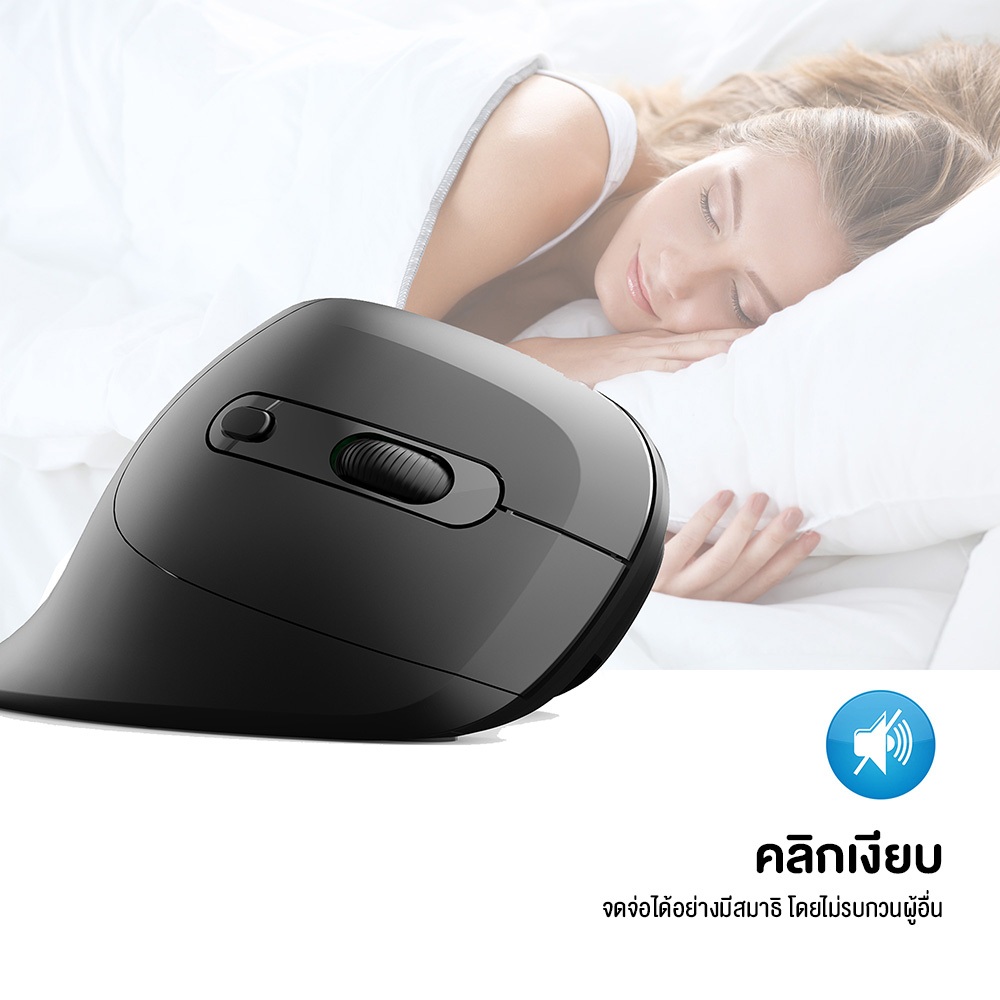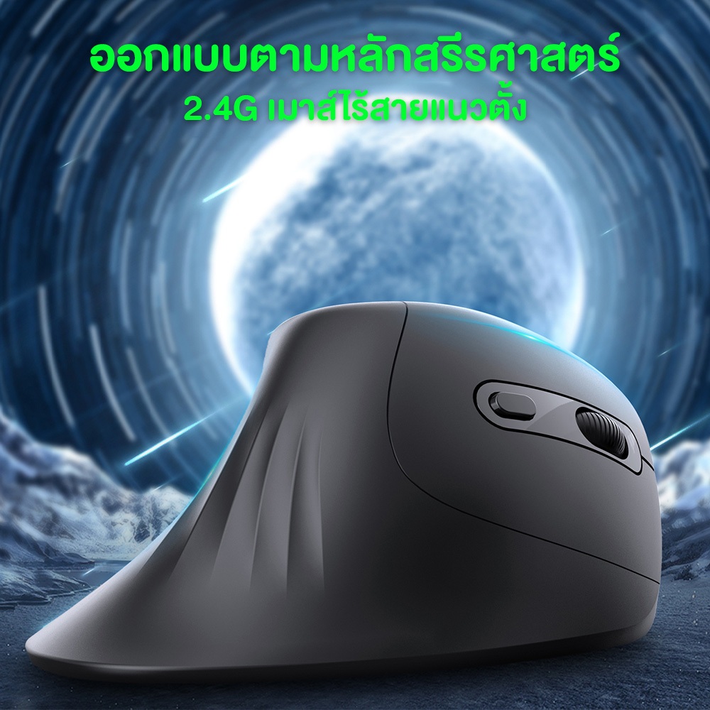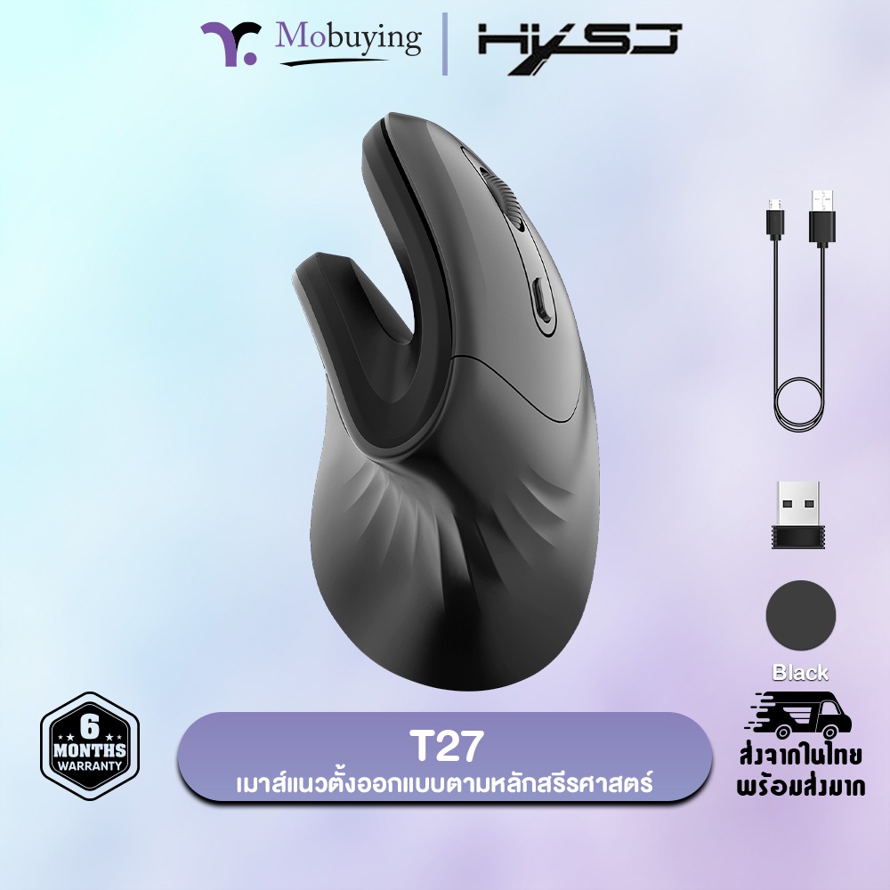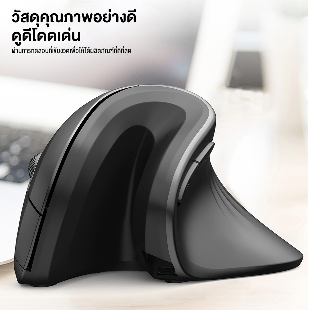 เมาส์ HXSJ T27 Vertical Mouse เมาส์เพื่อสุขภาพแนวตั้ง ออกแบบตามหลักสรีรศาสตร์ แบบไร้สาย , มีสาย , มีแบตเตอรี่ในตัว