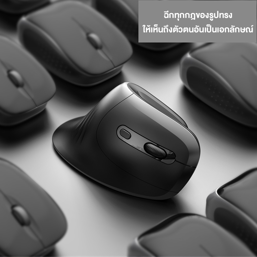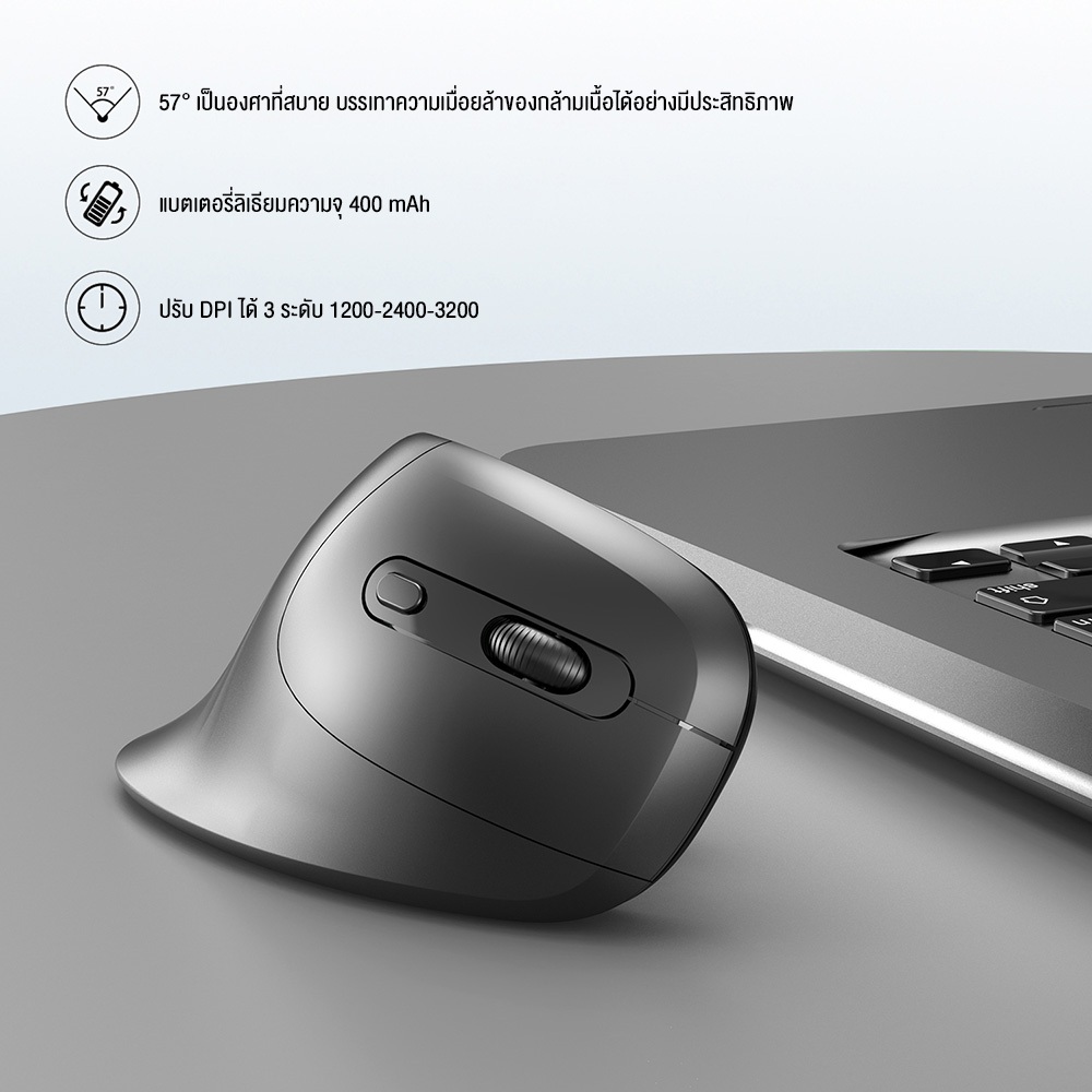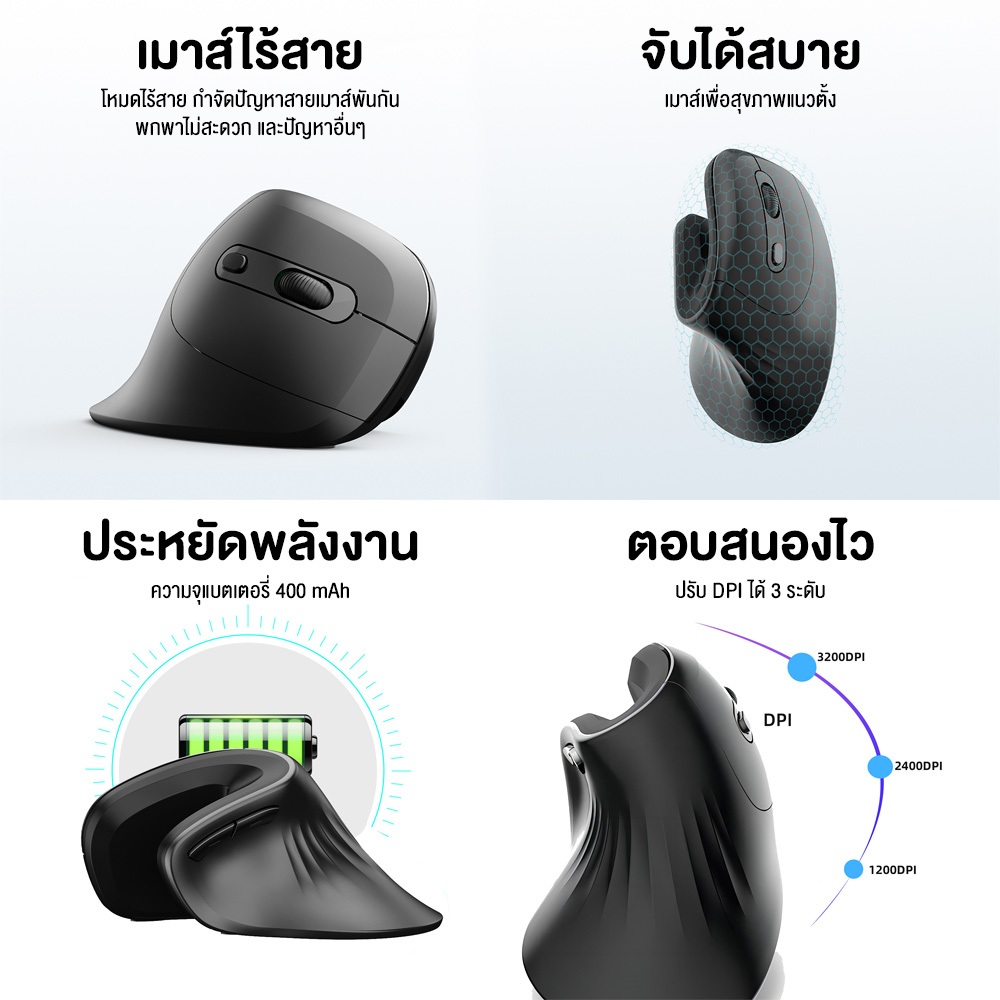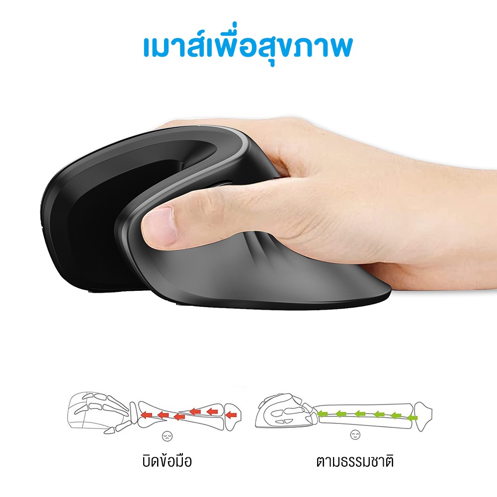 เมาส์ HXSJ T27 Vertical Mouse เมาส์เพื่อสุขภาพแนวตั้ง ออกแบบตามหลักสรีรศาสตร์ แบบไร้สาย , มีสาย , มีแบตเตอรี่ในตัว