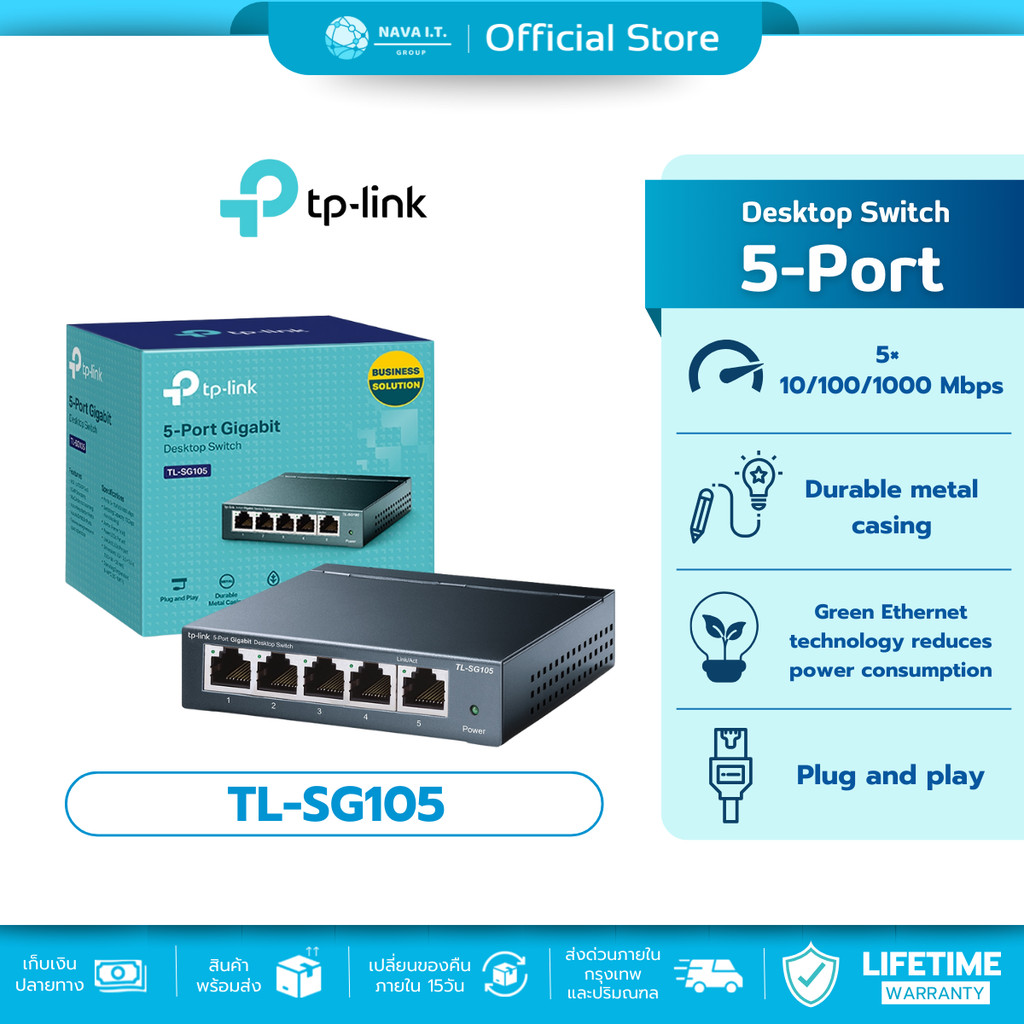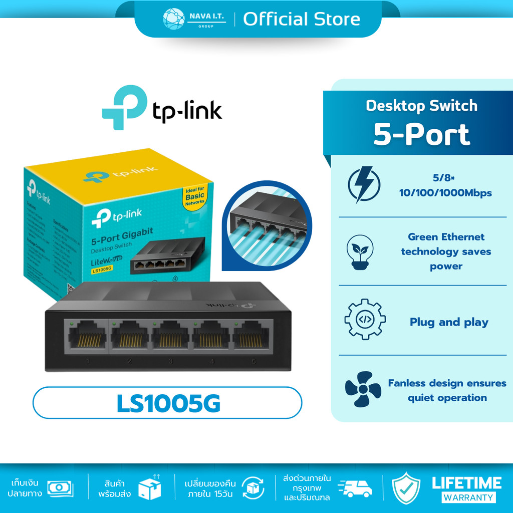 ?มีส่งด่วน? TP-LINK LS1005G 5-PORT 10/100/1000MBPS DESKTOP SWITCH รับประกันตลอดอายุการใช้งาน