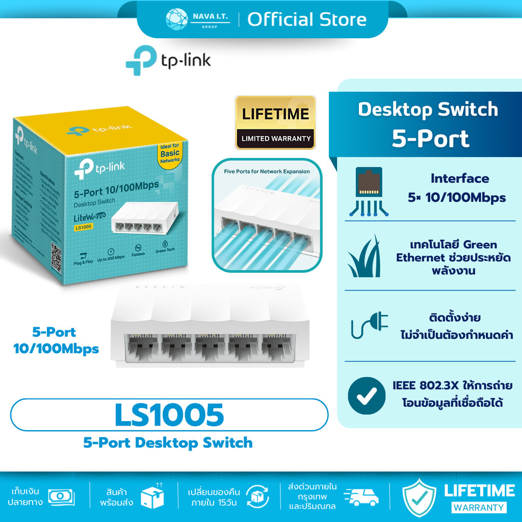?มีส่งด่วน? TP-LINK LS1005 5-Port 10/100Mbps Desktop Switch ประกันศูนย์ไทย