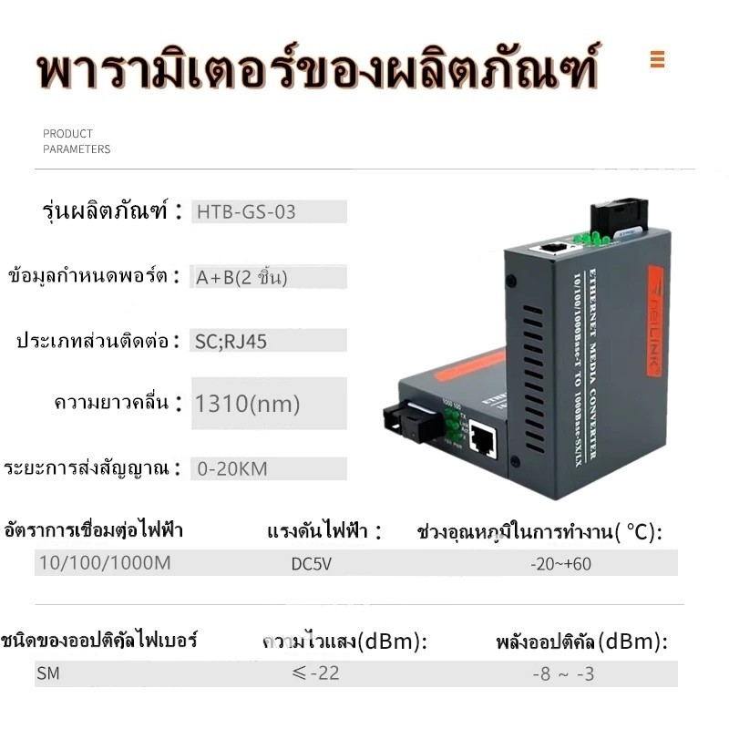 Media Converter Gigabit HTB-GS-03 10/100/1000 มีเดีย คอนเวอเตอร์ (A+B) 20KM/ netlink 1 คู่ A+B