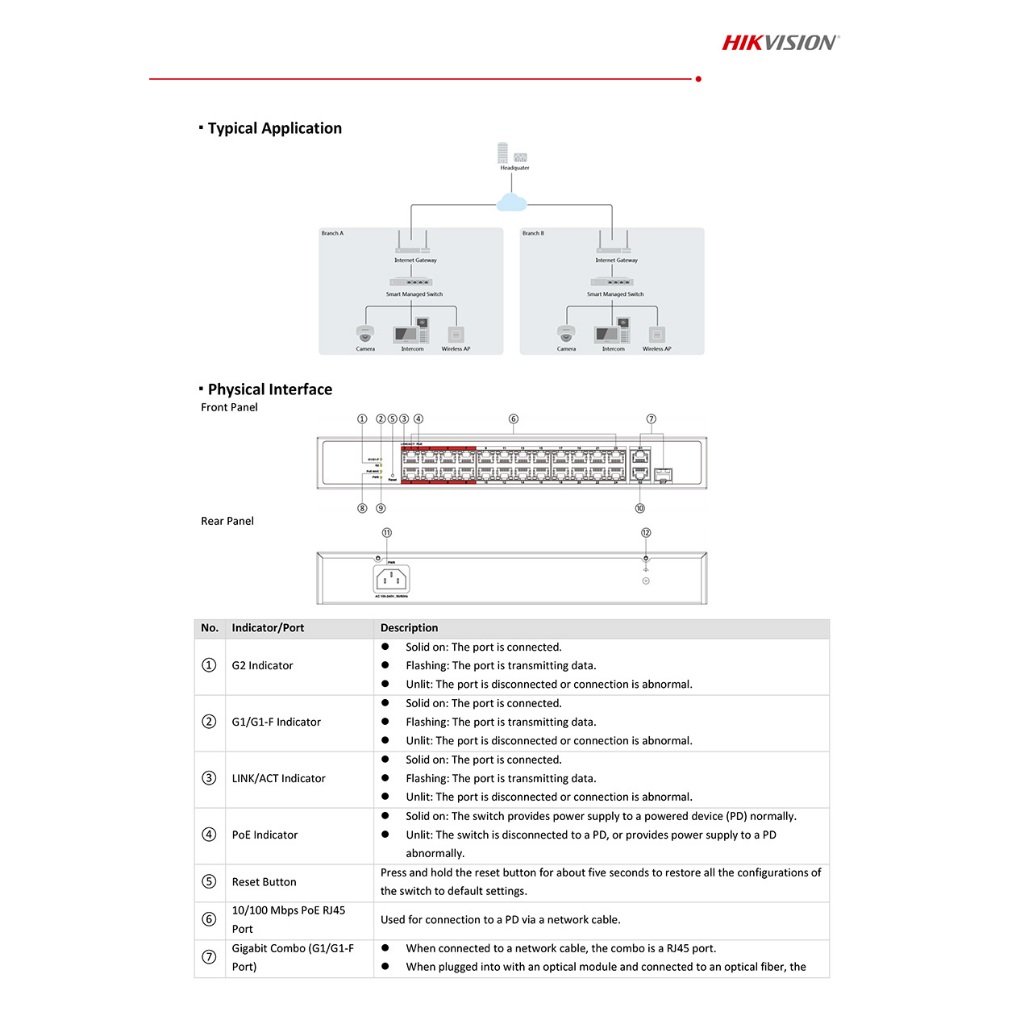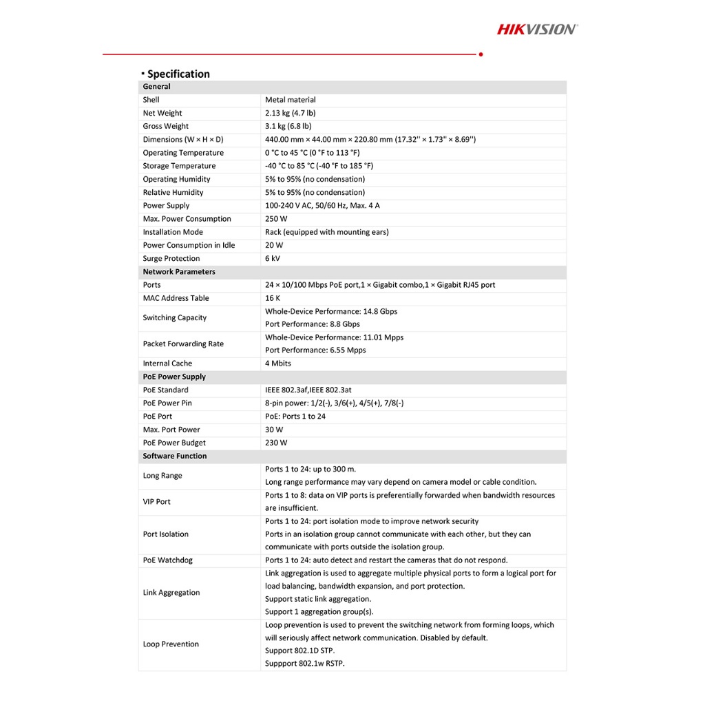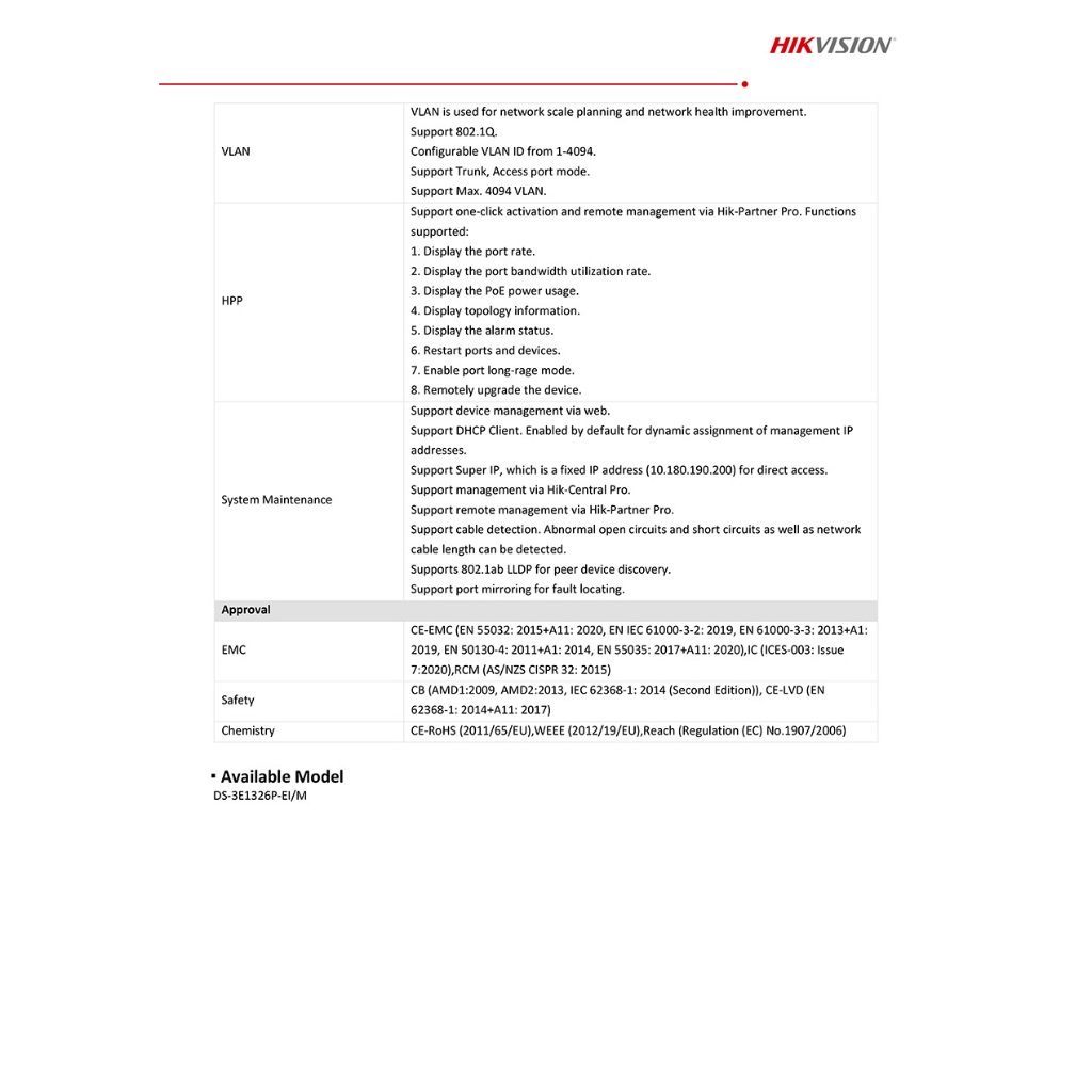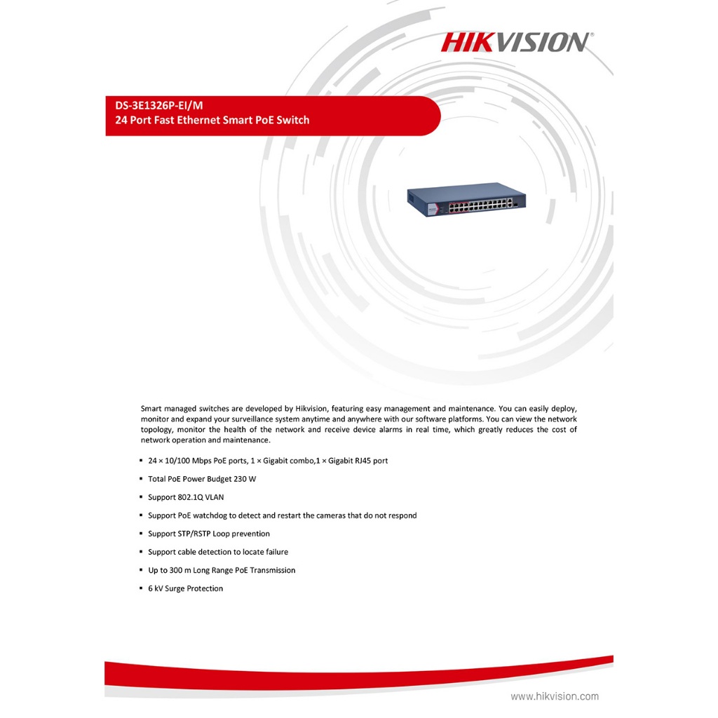 HIKVISION DS-3E1326P-EI/M 24×10/100M PoE ports, 1×Gigabit combo,1×Gigabit RJ45 port Smart POE Switch