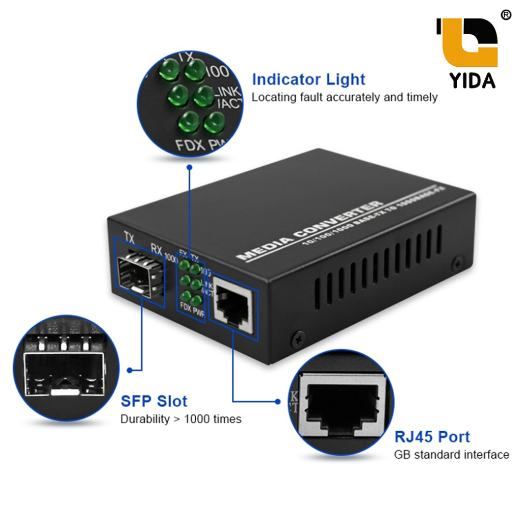 SFP Media Converter gigabit ตัวแปลงสายไฟเบอร์เป็นแลน โมดูล sfp LC Duplex SC SM MM 20km